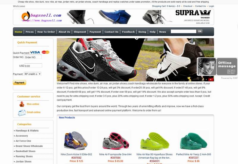 www.shoesbagsell.com Creation Date:2011-11-01 ,this site main products is replica nike shoes.there are some handbags wallets on the site