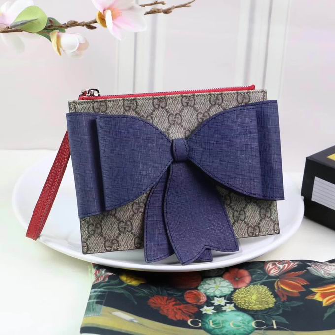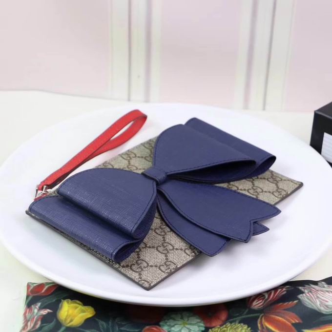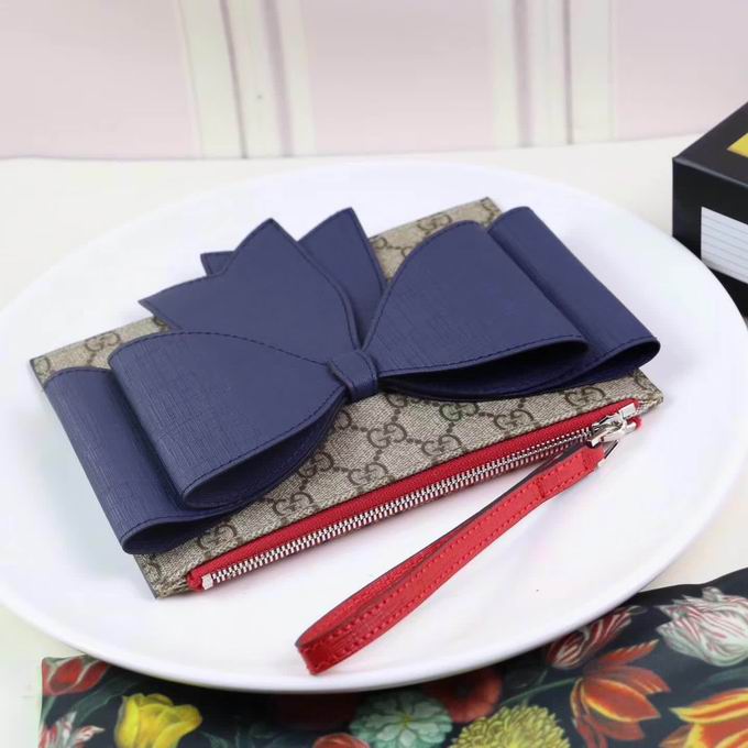 Gucci Childrens GG Supreme bow wristlet blue