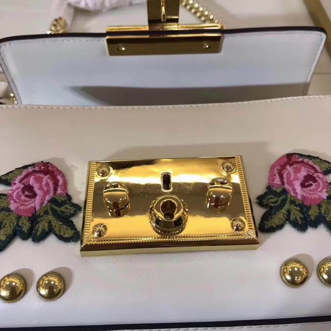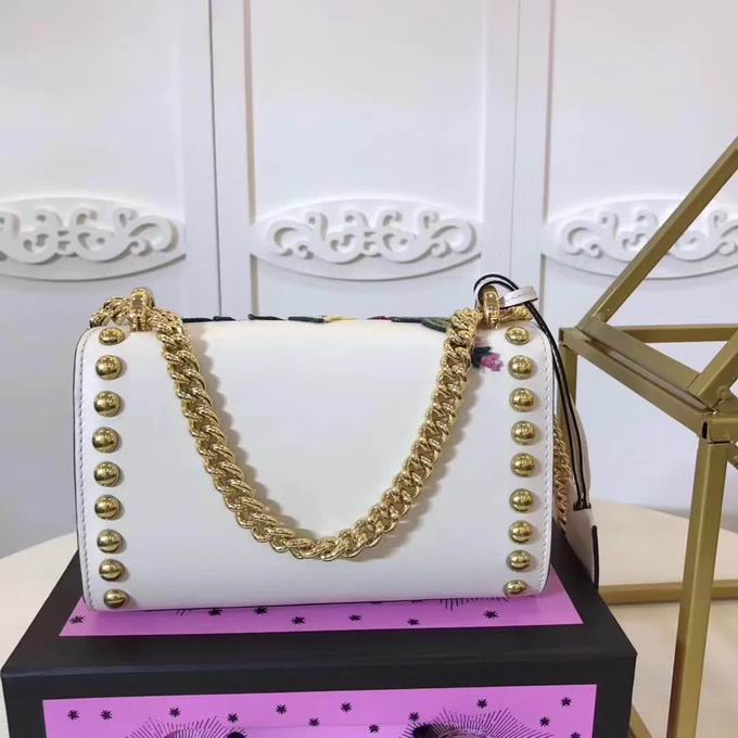 Gucci Sylvie animal studs medium top handle bag white