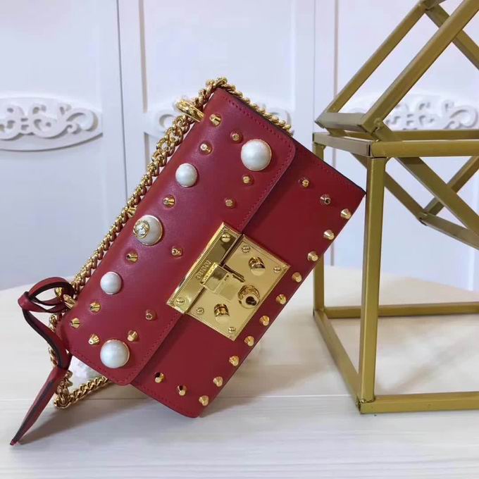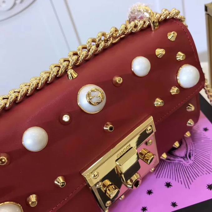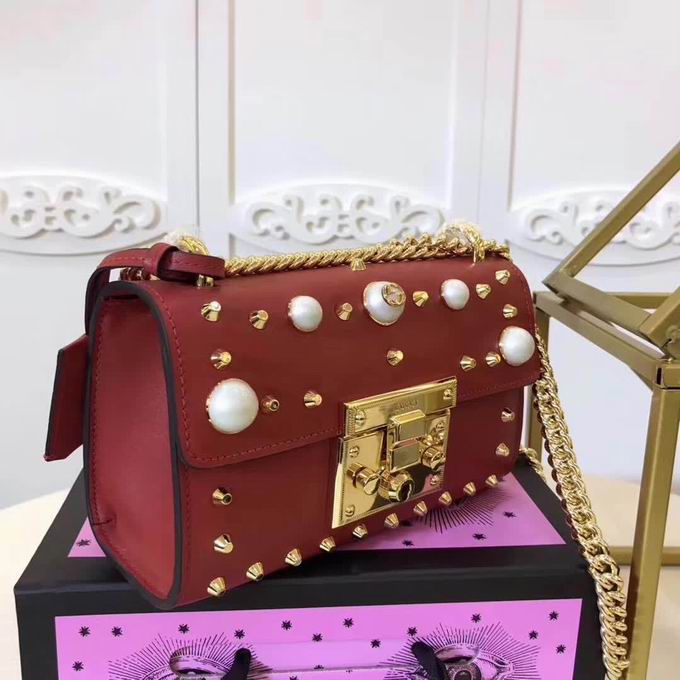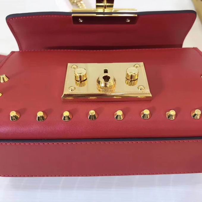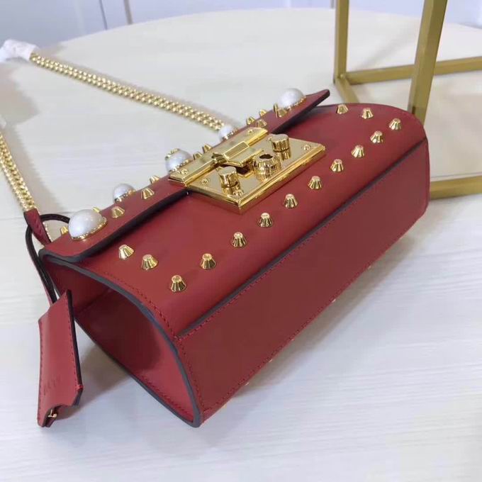 >> Gucci Padlock studded leather shoulder bag red