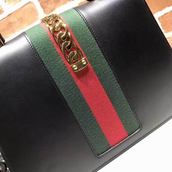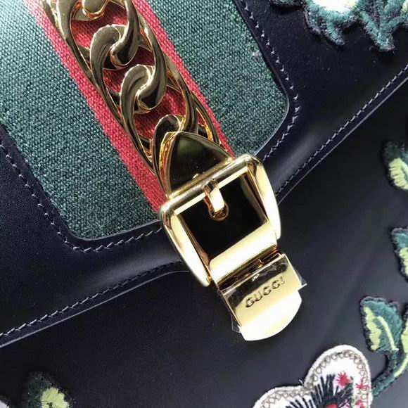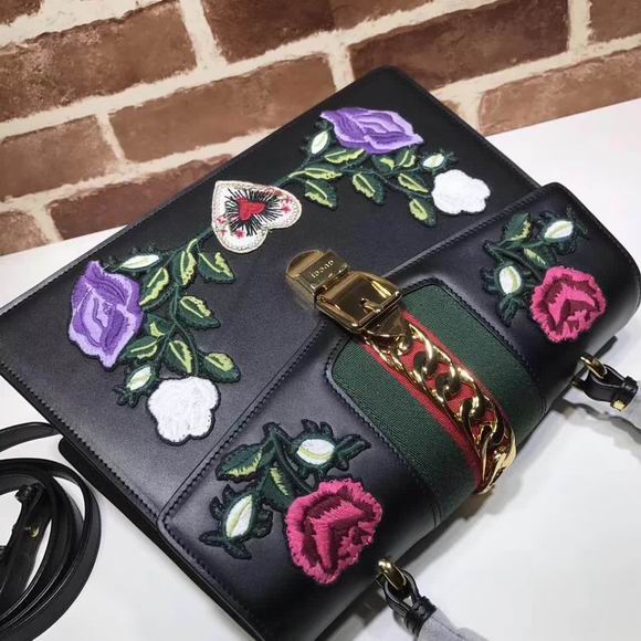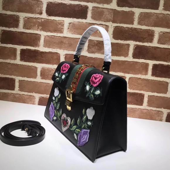Gucci >> Gucci Sylvie Embroidered Leather Top Handle Bag black Leather