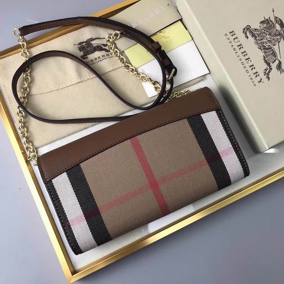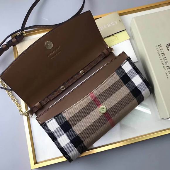 Burberry >> Burberry House Check and Leather Wallet with Chain dark brown