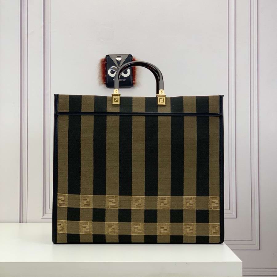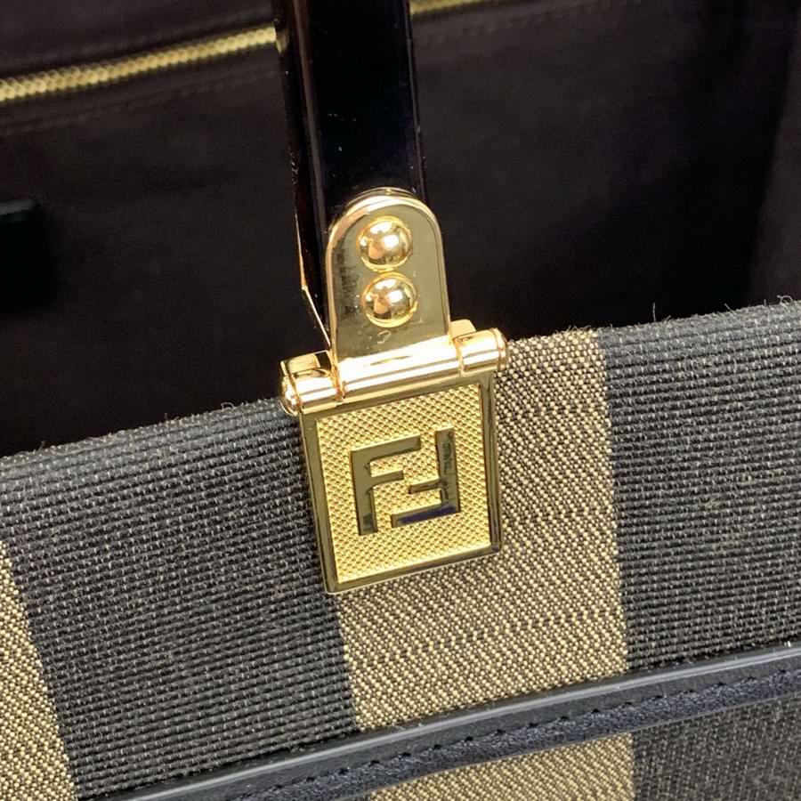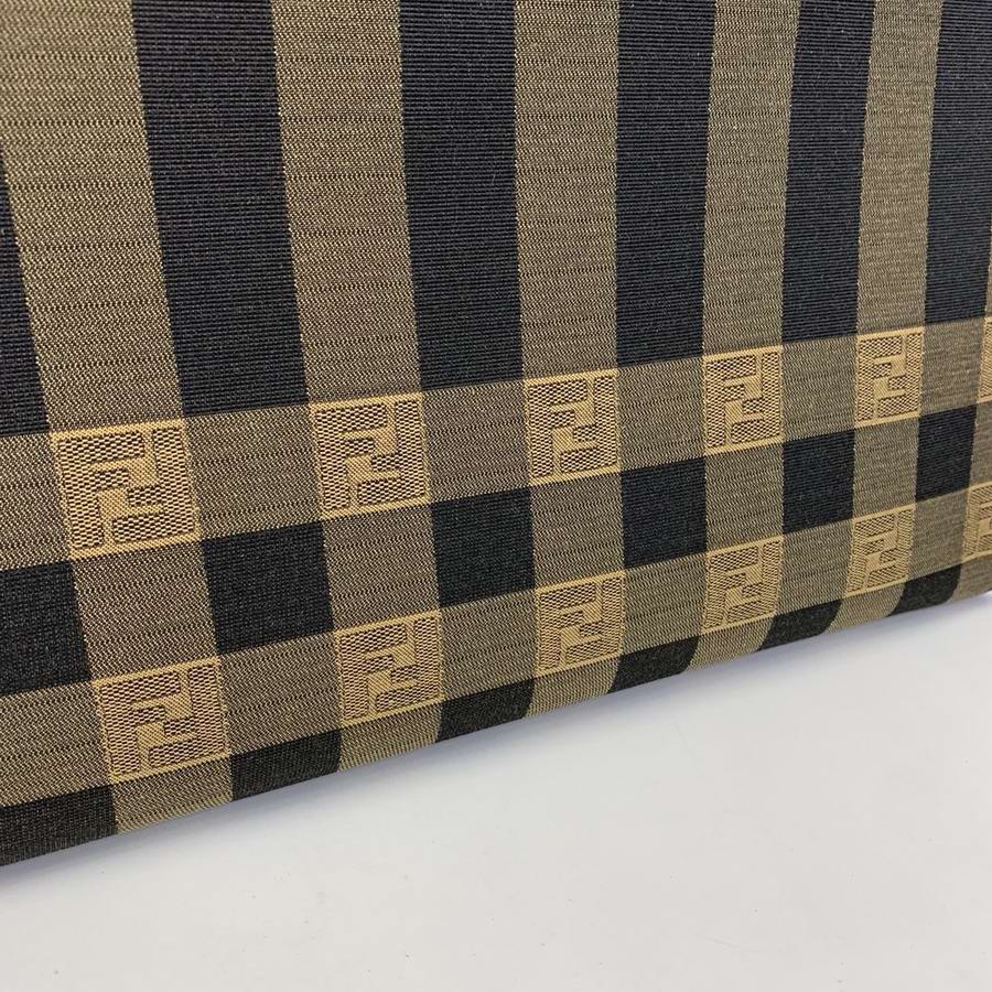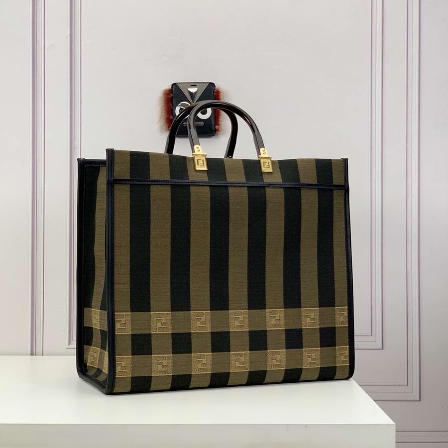 Sunshine Shopper bag made from jacquard fabric with a gingham Pequin pattern in shades of brown.