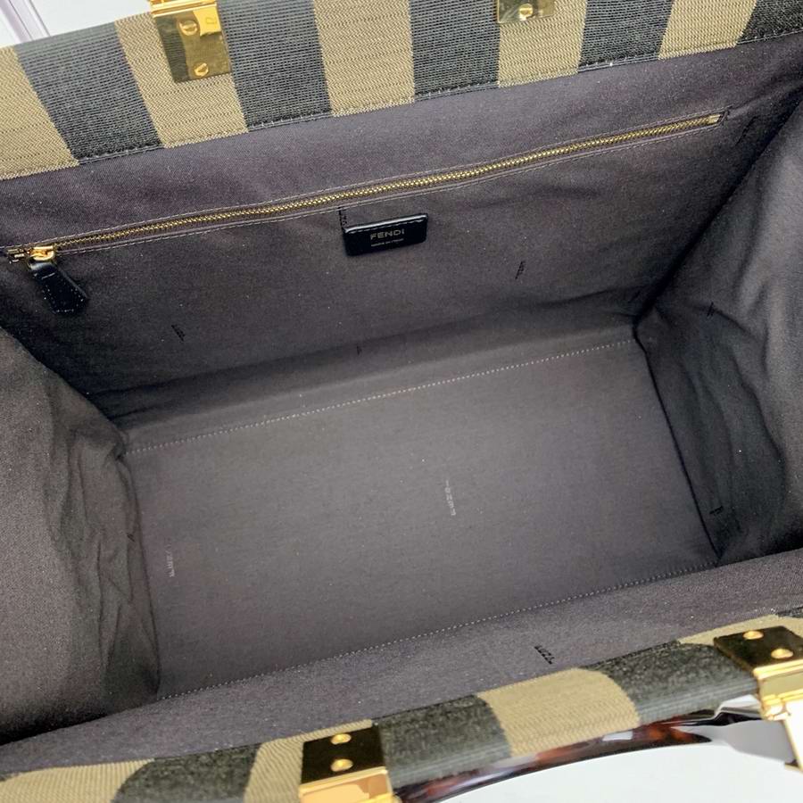 Trimmed with tone-on-tone leather, equipped with a spacious internal compartment and gold-finish metalware.