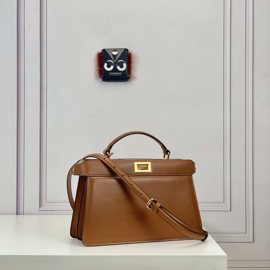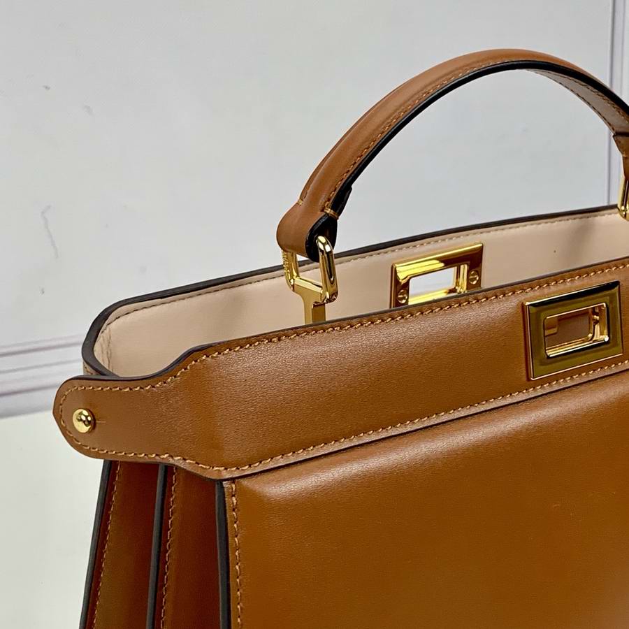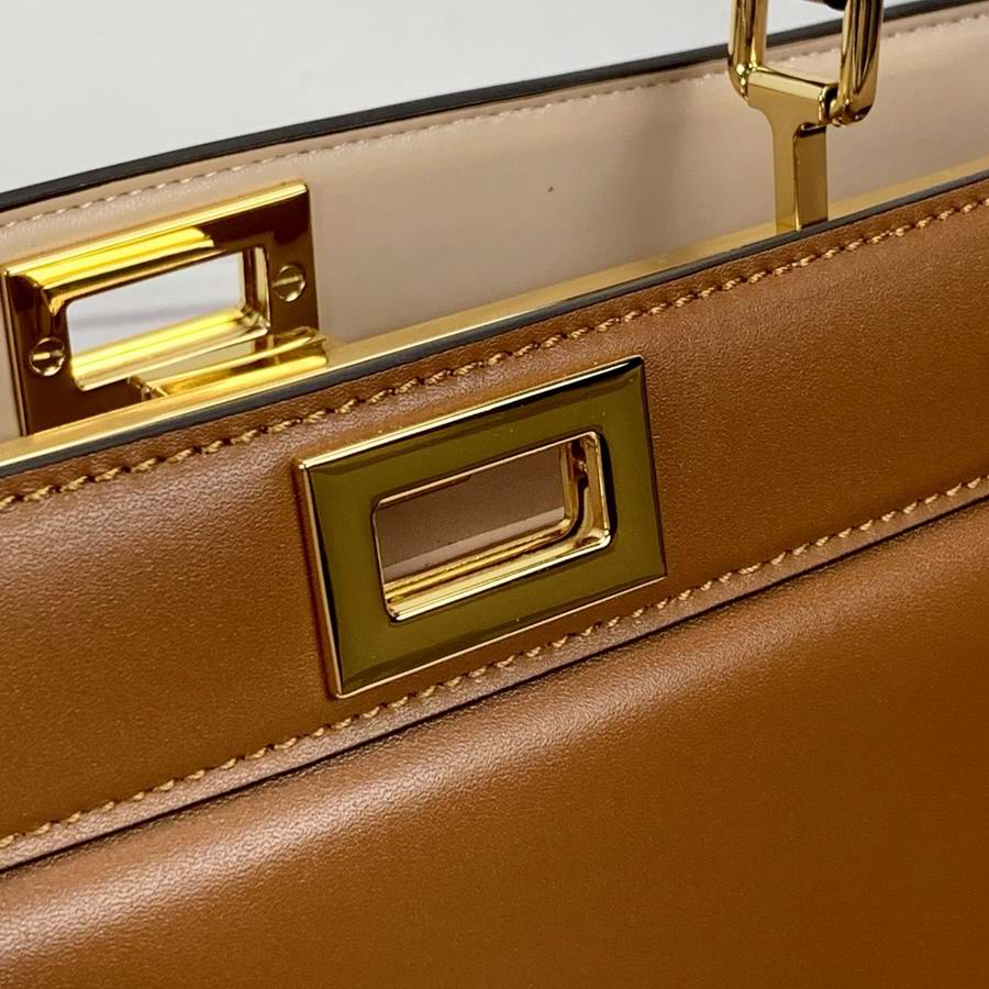 Iconic Peekaboo I See U bag in horizontal design made of yellow leather and embellished with the classic twist lock on both sides. Featuring a soft pink nappa leather lining, two compartments separated by a stiff partition, an inner pocket and gold-finish metalware. Can be carried by hand or on the shoulder thanks to its handle and the adjustable, detachable shoulder strap