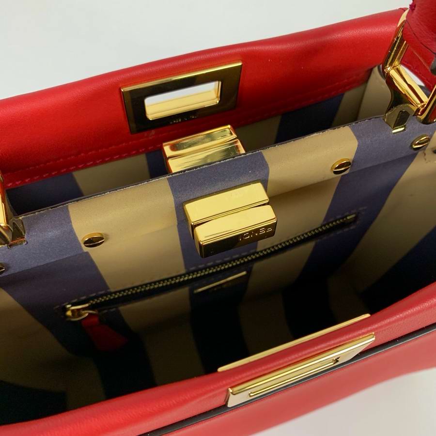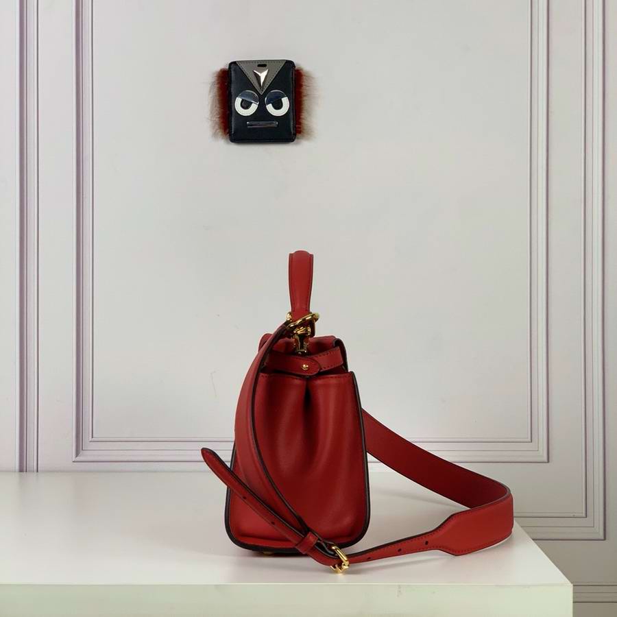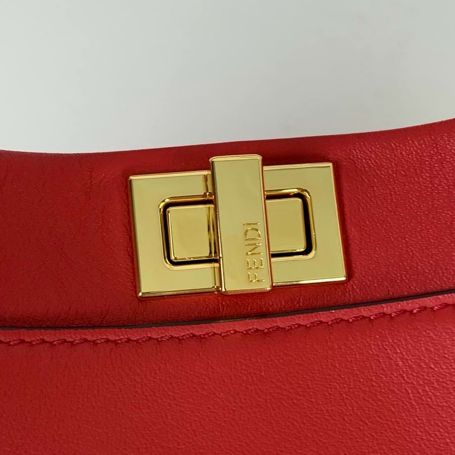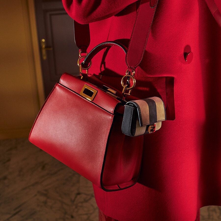 Iconic small Peekaboo bag, made of dark brown leather and embellished with the iconic twist lock on both sides. Featuring soft, nubuck leather lining with a Pequin motif, two compartments separated by a stiff partition, an inner zip pocket and gold-finish metalware. The bag can be carried by hand or worn either on the shoulder or cross-body thanks to the handle and adjustable, detachable shoulder strap