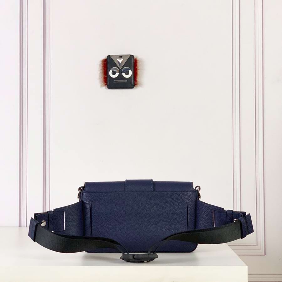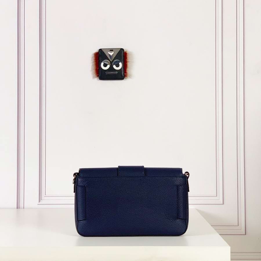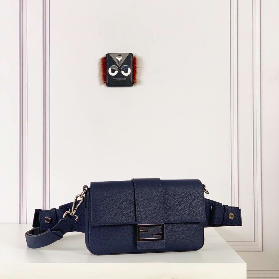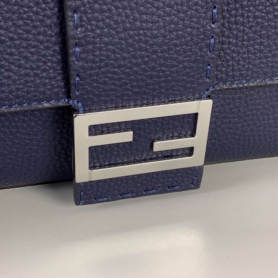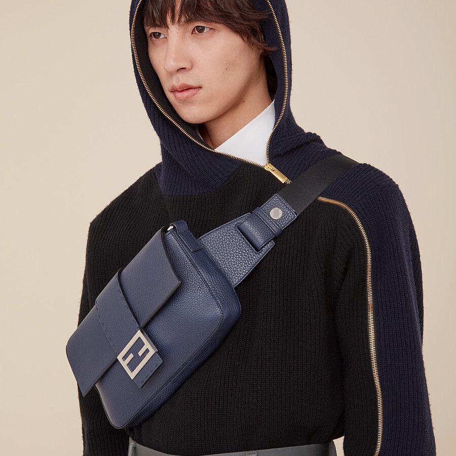 Regular Baguette with square flap and FF magnetic clasp. It can be worn either as a belt bag, using the strap that pulls out of the outer pocket on the back, or as a shoulder or cross-body bag by attaching the detachable shoulder straps. Internal zippered pocket. Made of black Romano leather. Palladium-finish metalware.