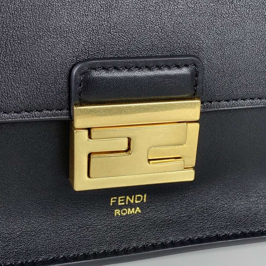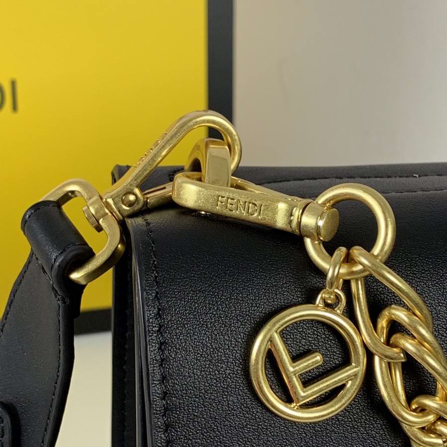 Geometric bag made of matte black leather, with the flap embellished with embossed corners and iconic FF press fastening.