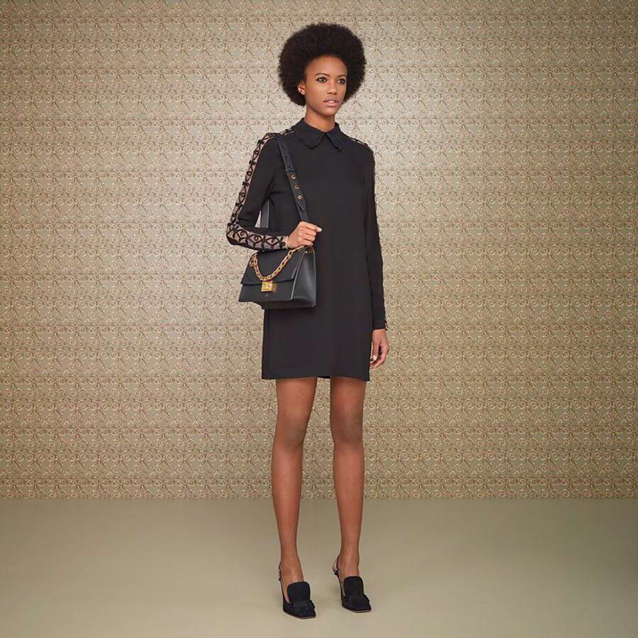 Can be worn either on the shoulder or cross-body thanks to the double detachable shoulder straps, one long and adjustable and one short with a chain.