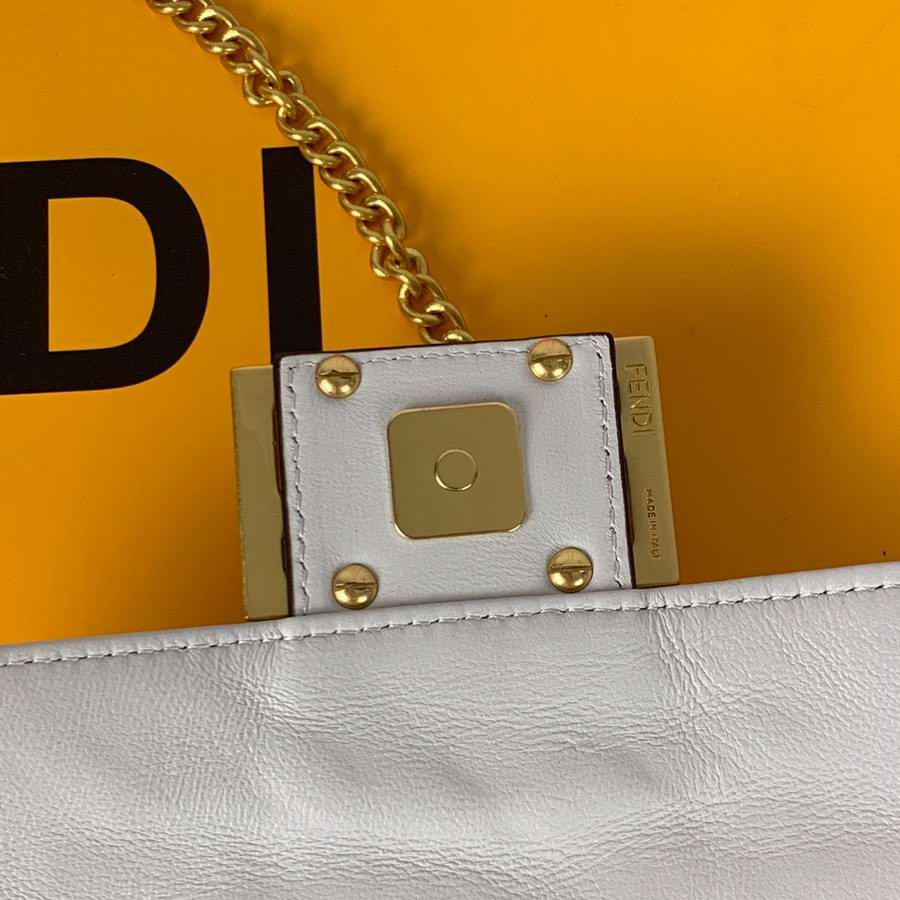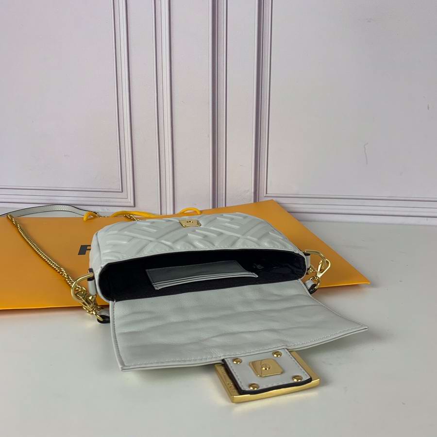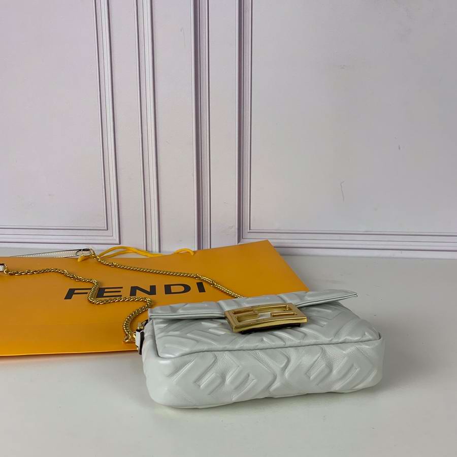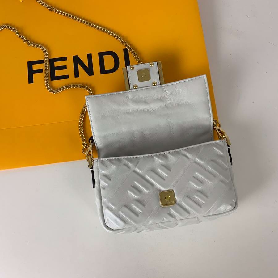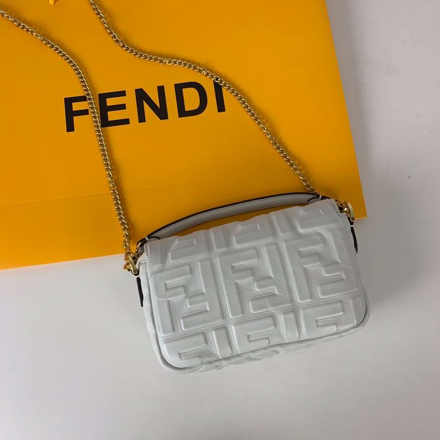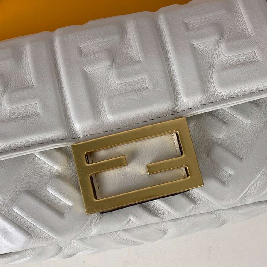 Iconic mini Baguette bag made of black soft nappa leather with a three-dimensional texture FF motif. Decorated with an FF clasp.