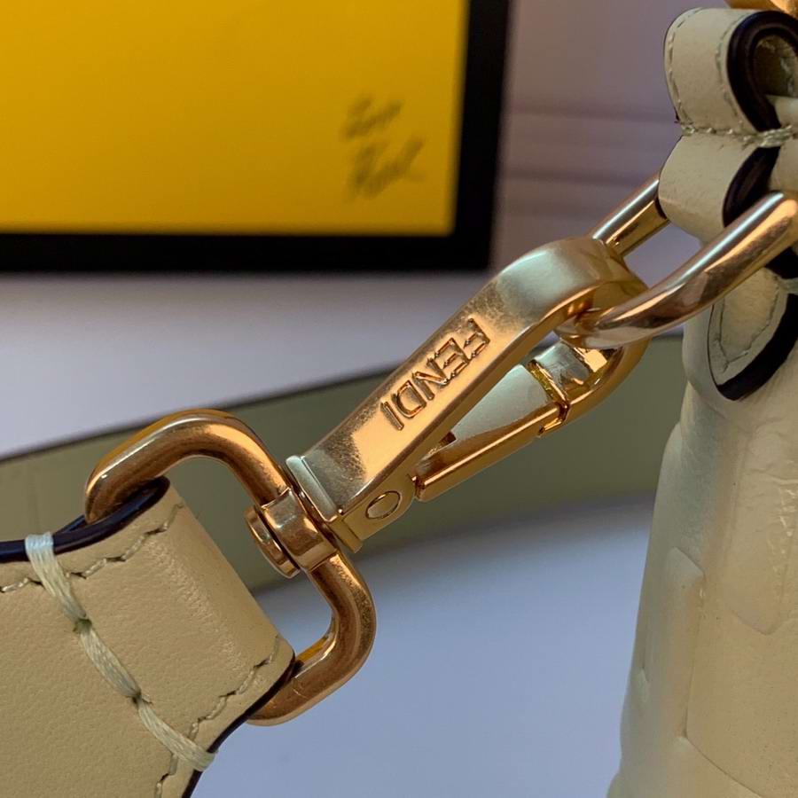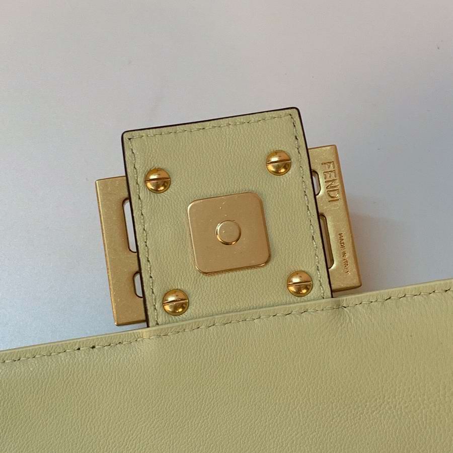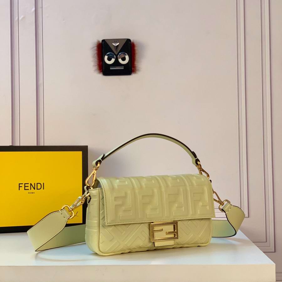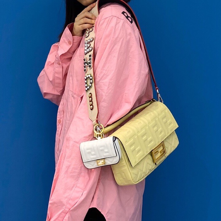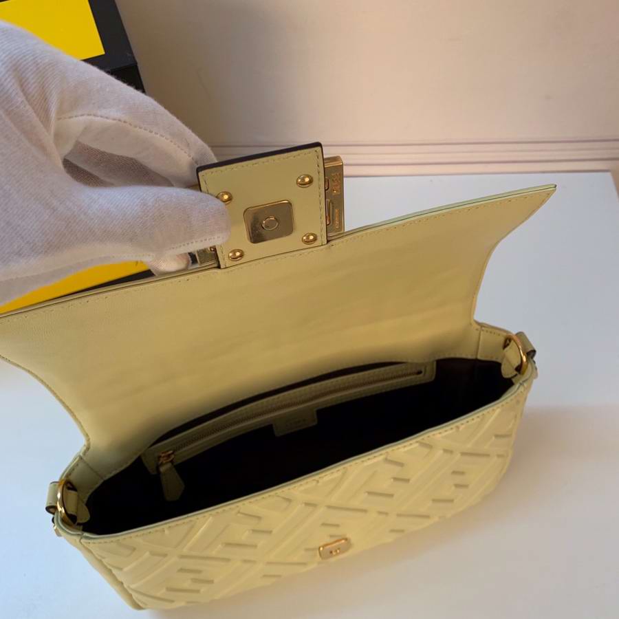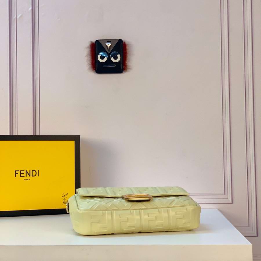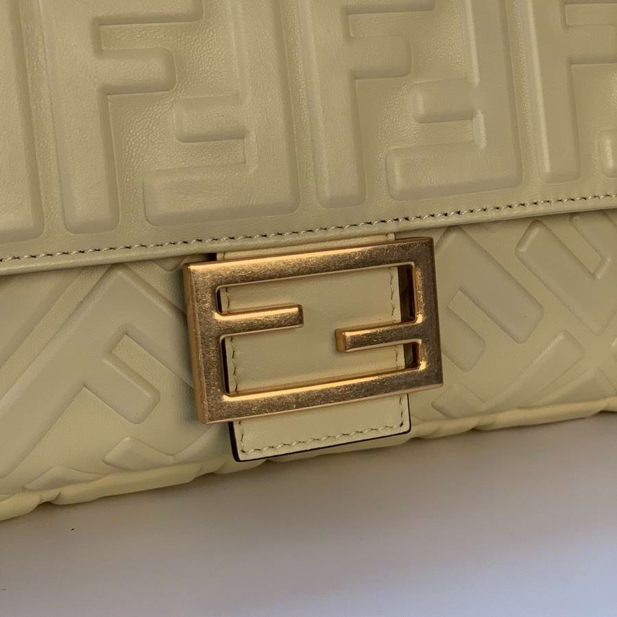 Iconic mini Baguette bag made of black soft nappa leather with a three-dimensional texture FF motif. Decorated with an FF clasp.
