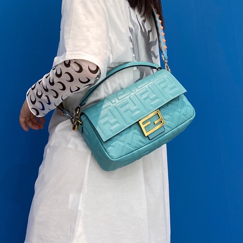 Home >> Handbags>> Fendi >> BAGUETTE blue leather bag medium