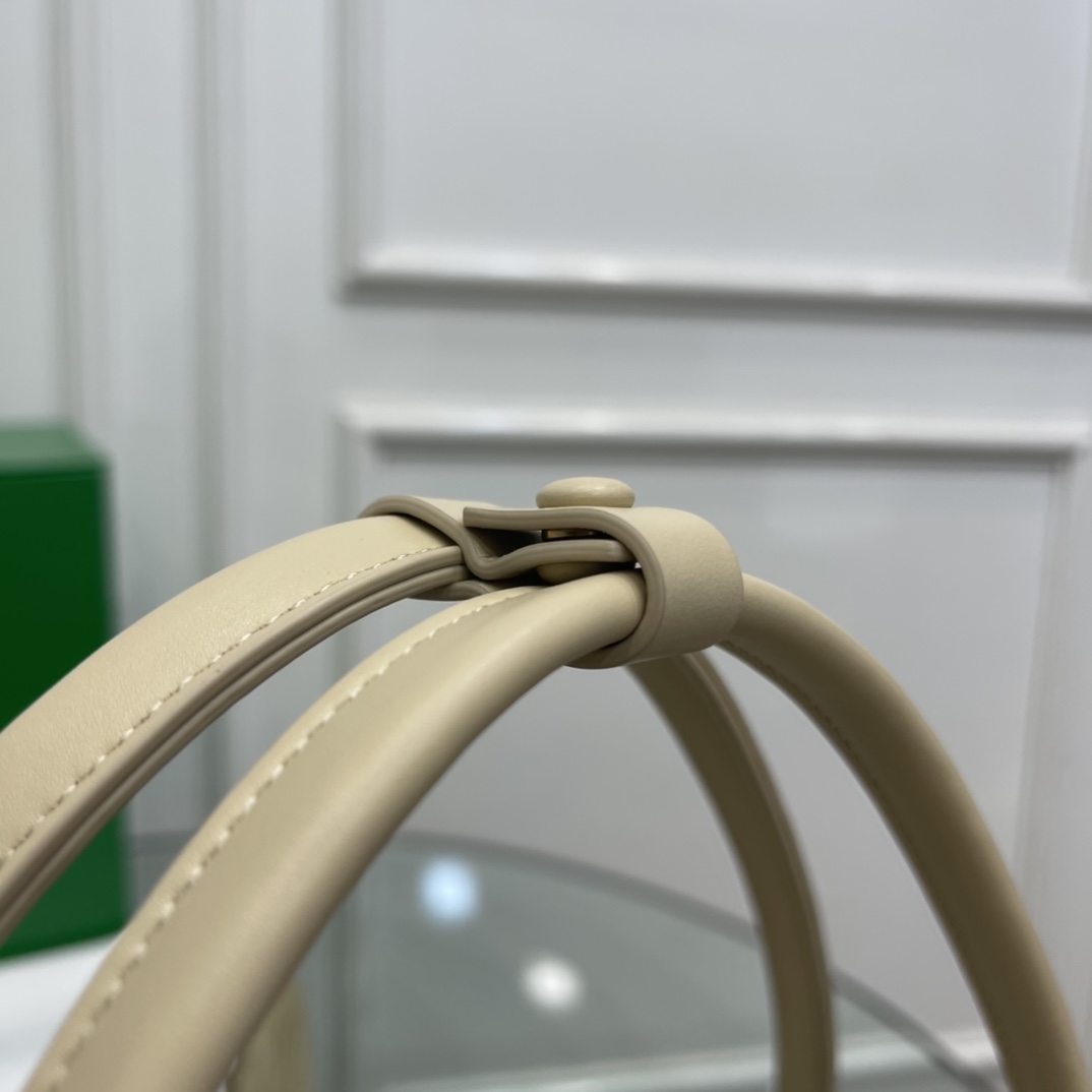 Rolled leather handles secured with a snap-button leather loop