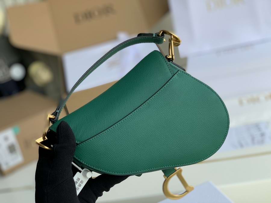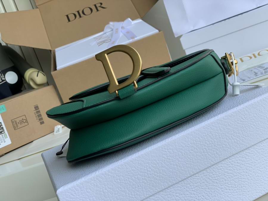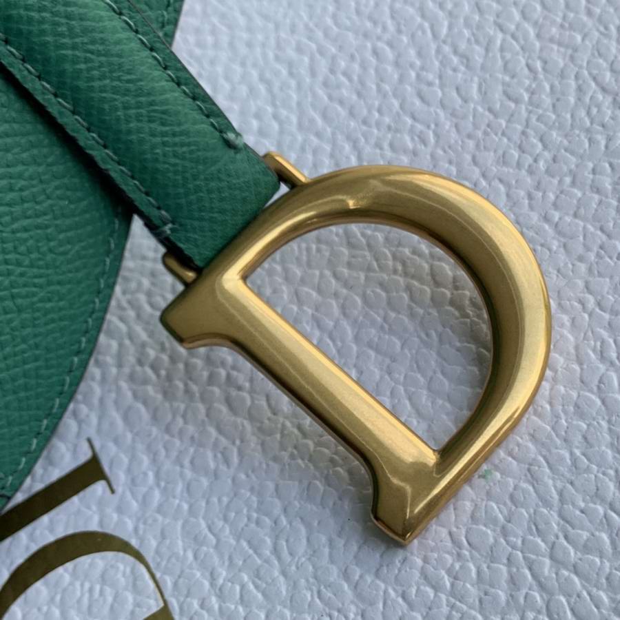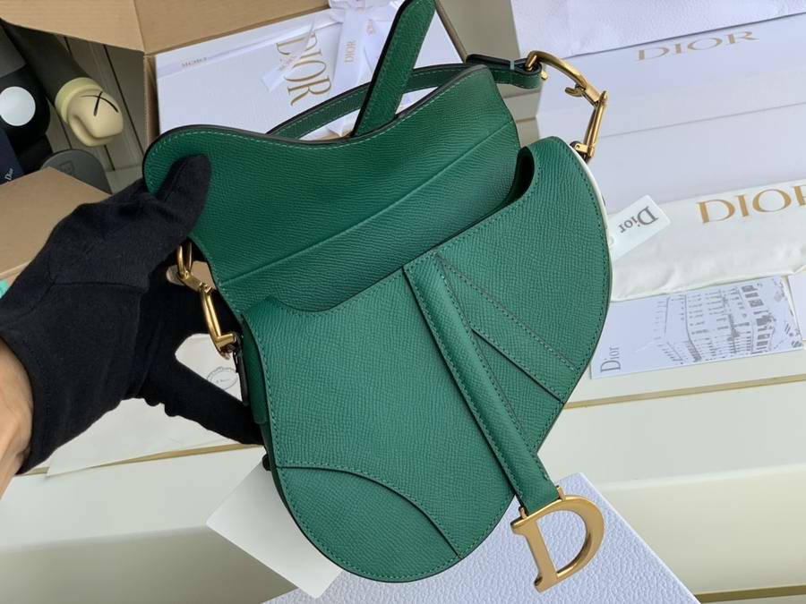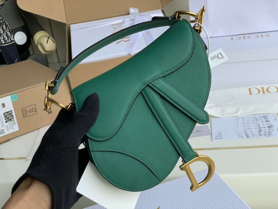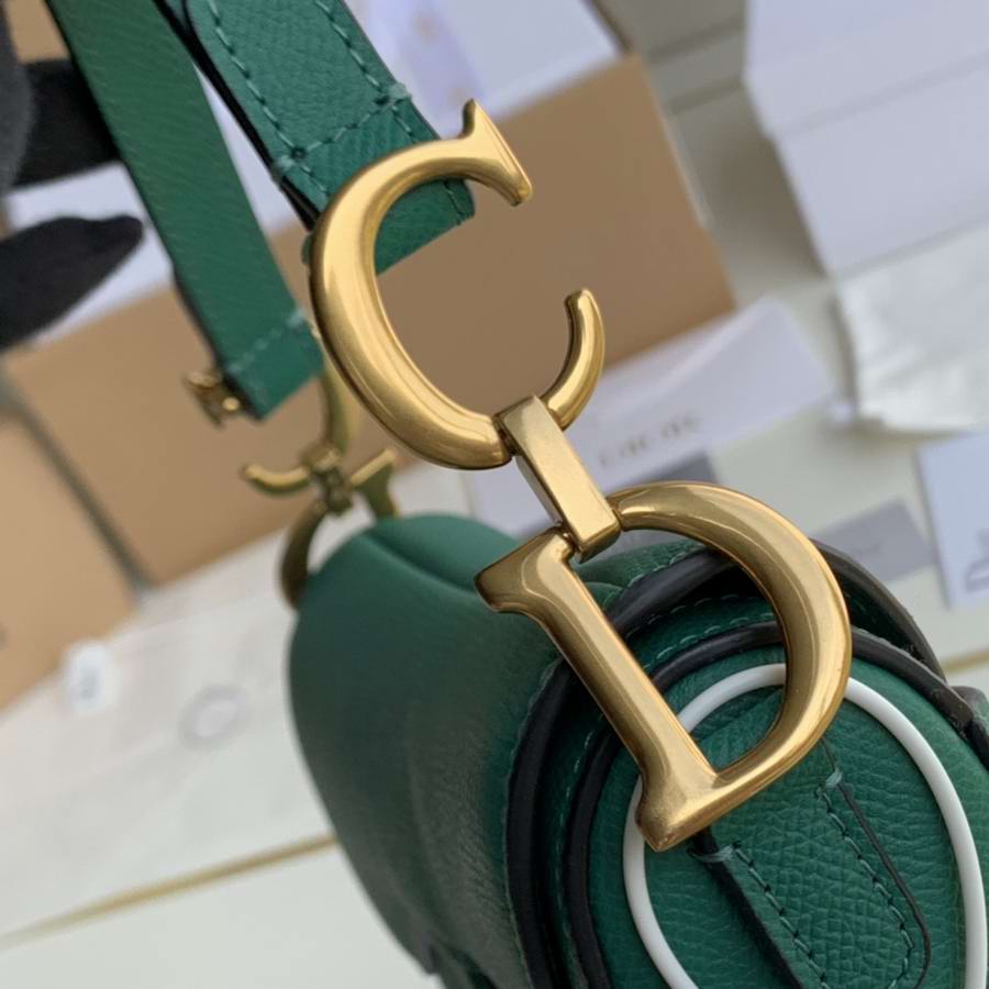 Maria Grazia Chiuri brings a fresh update to the iconic Saddle bag. The heritage design showcases the emblematic 'D'-stirrup magnetic clasp and Saddle flap with the signature 'CD' structure on both sides of the handle. Crafted in Green grained calfskin and embellished with antique gold-finish metal hardware, the modern style may be customized with alternative straps.