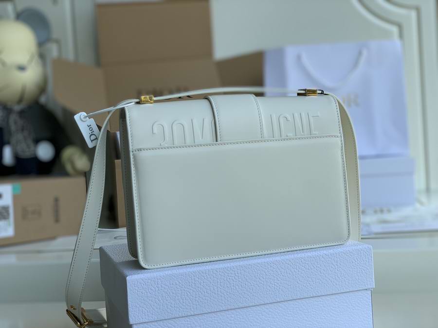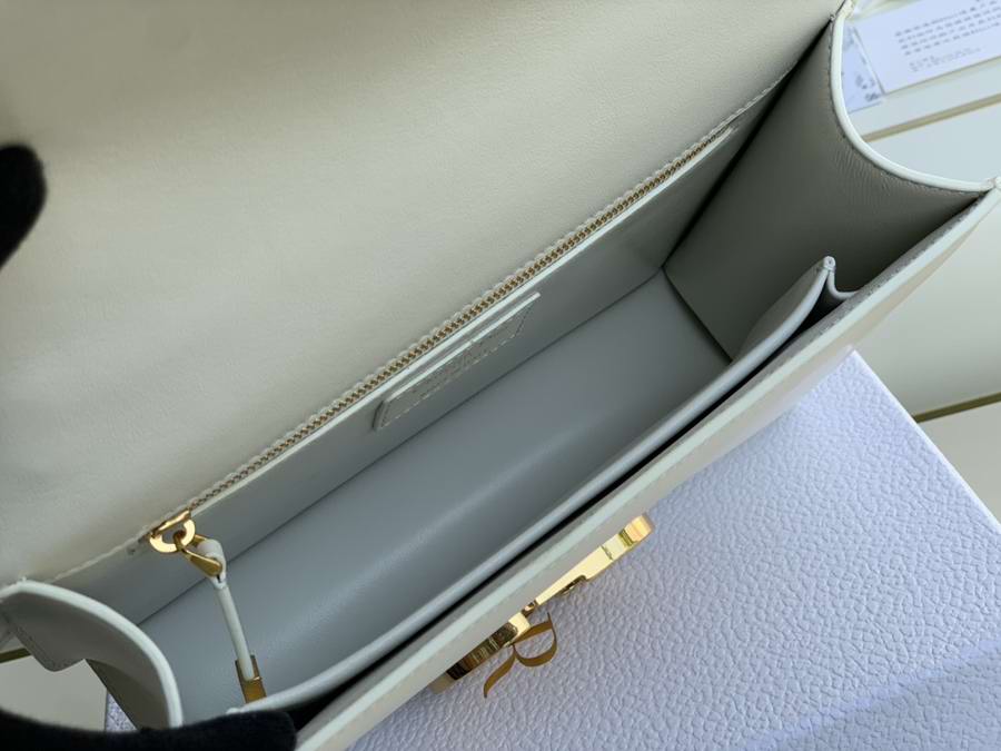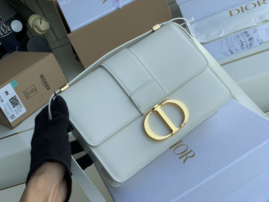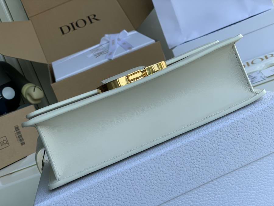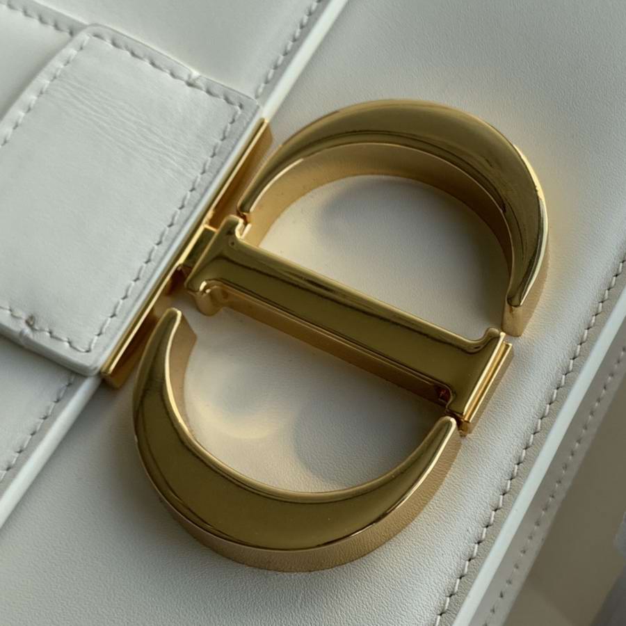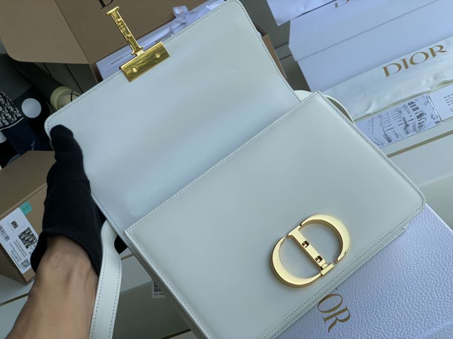 The 30 Montaigne line, inspired by the historic, emblematic address, presents essential pieces that portray the iconic codes of the House. The handbag is crafted in latte box calfskin for an elegant and timeless look. The flap is embellished with an antique gold-finish metal 'CD' clasp. Refined details such as an embossed '30 Montaigne' signature on the back and the softer calfskin sides spotlight the sleek, meticulous design.