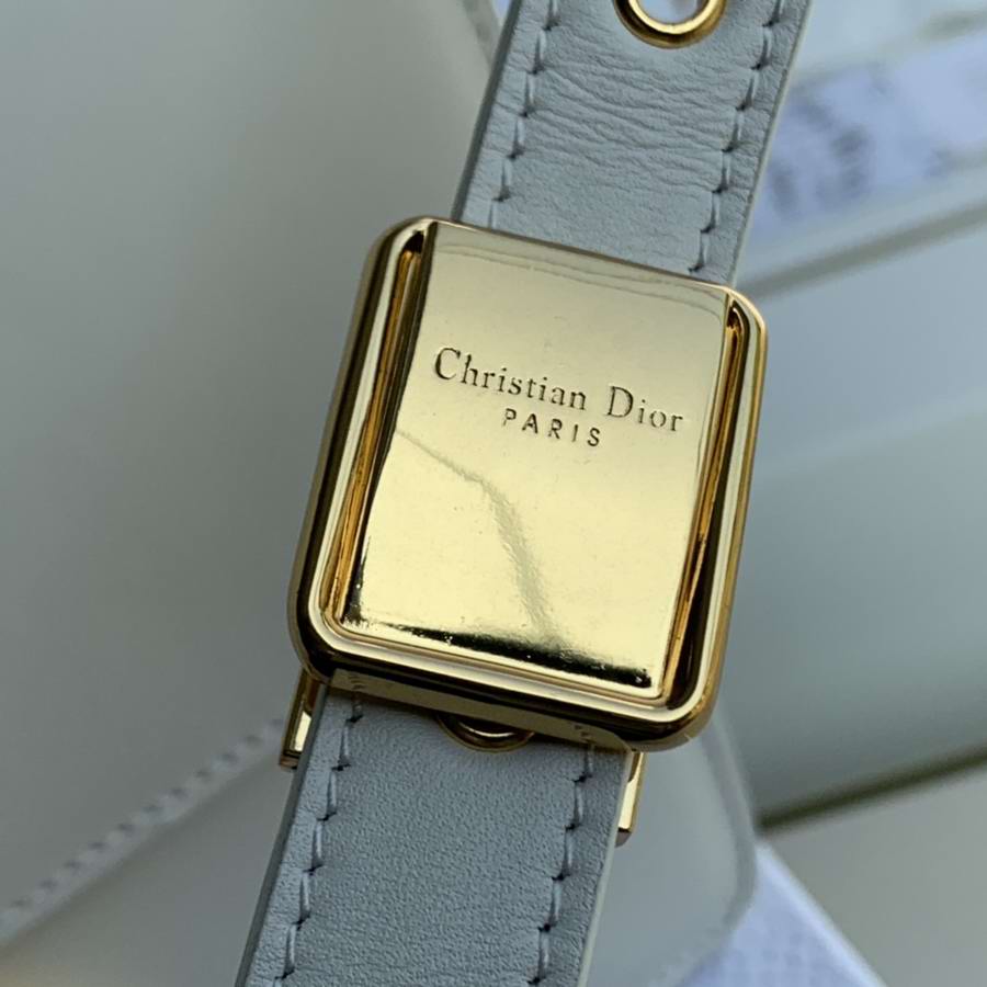 Adjustable leather shoulder strap with 'Christian Dior' military-inspired buckle