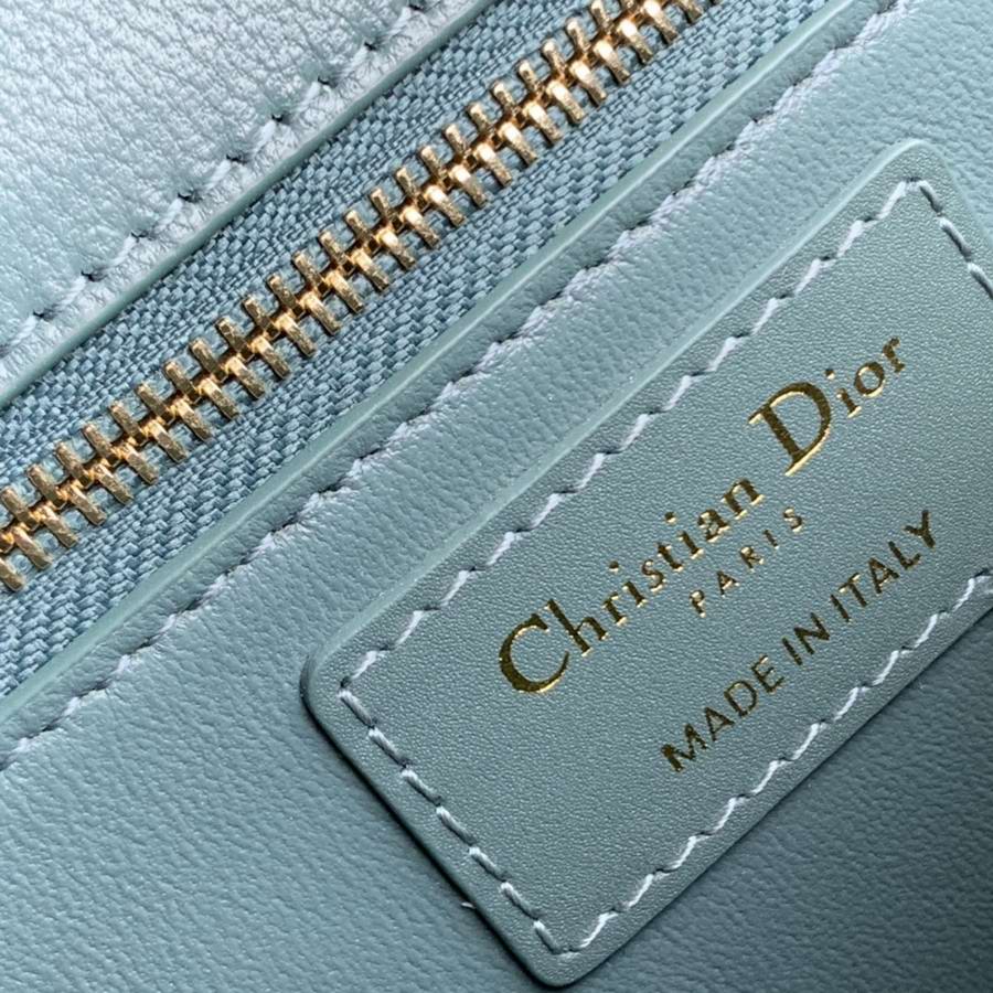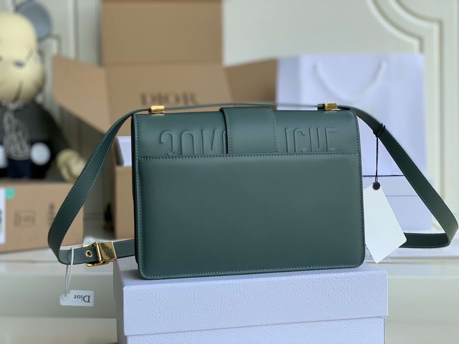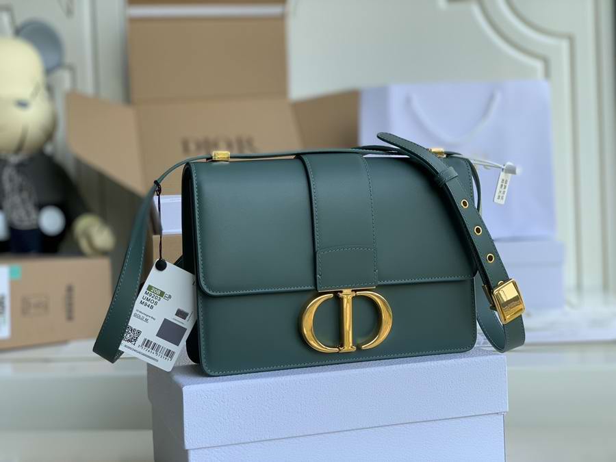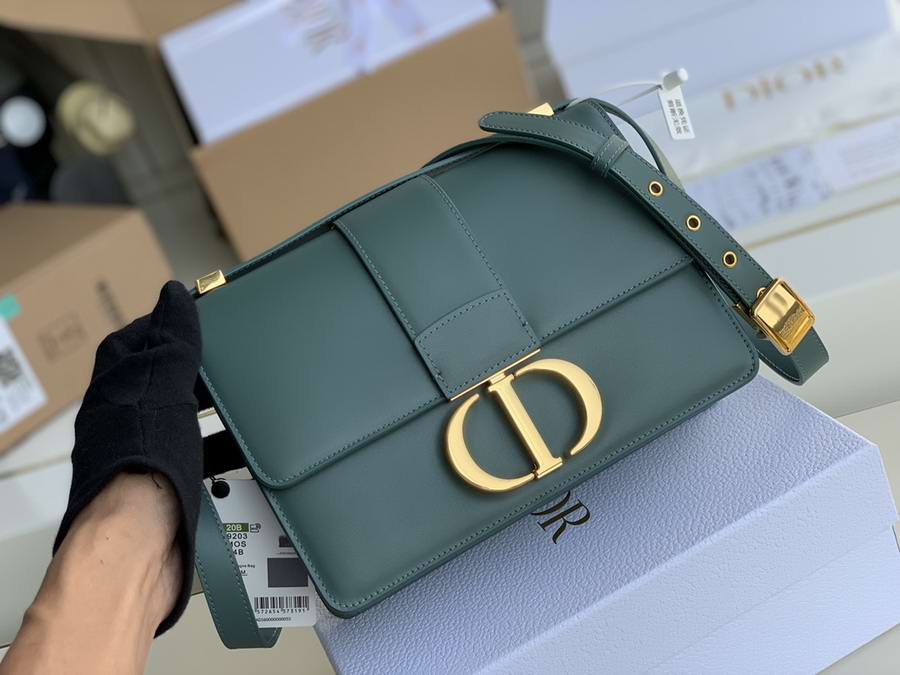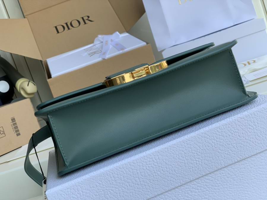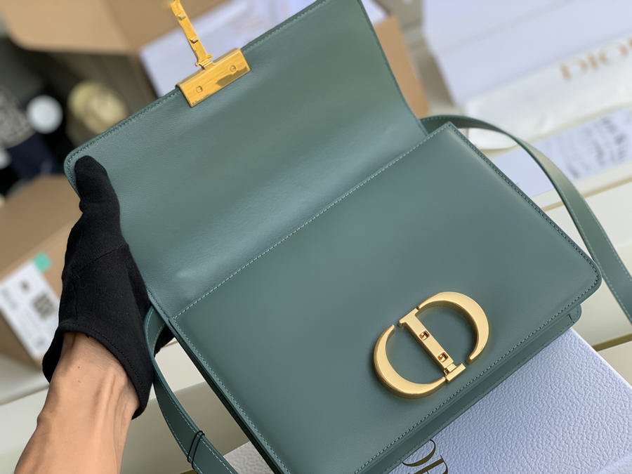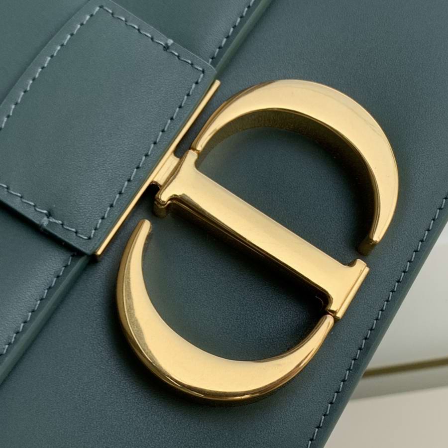 The 30 Montaigne line, inspired by the historic, emblematic address, presents essential pieces that portray the iconic codes of the House. This handbag is crafted in mint green box calfskin for an elegant and timeless look. The flap is embellished with an antique gold-finish metal 'CD' clasp. Refined details such as an embossed '30 Montaigne' signature on the back and the softer calfskin sides spotlight the sleek, meticulous design.