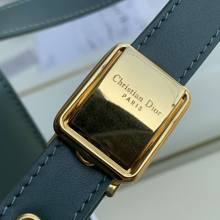 Adjustable leather shoulder strap with 'Christian Dior' military-inspired buckle