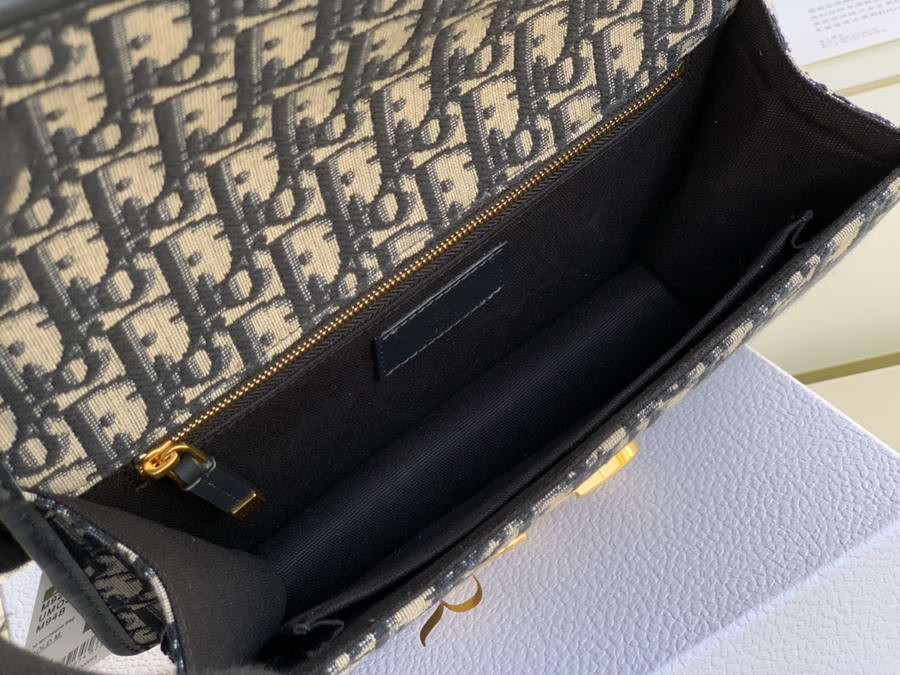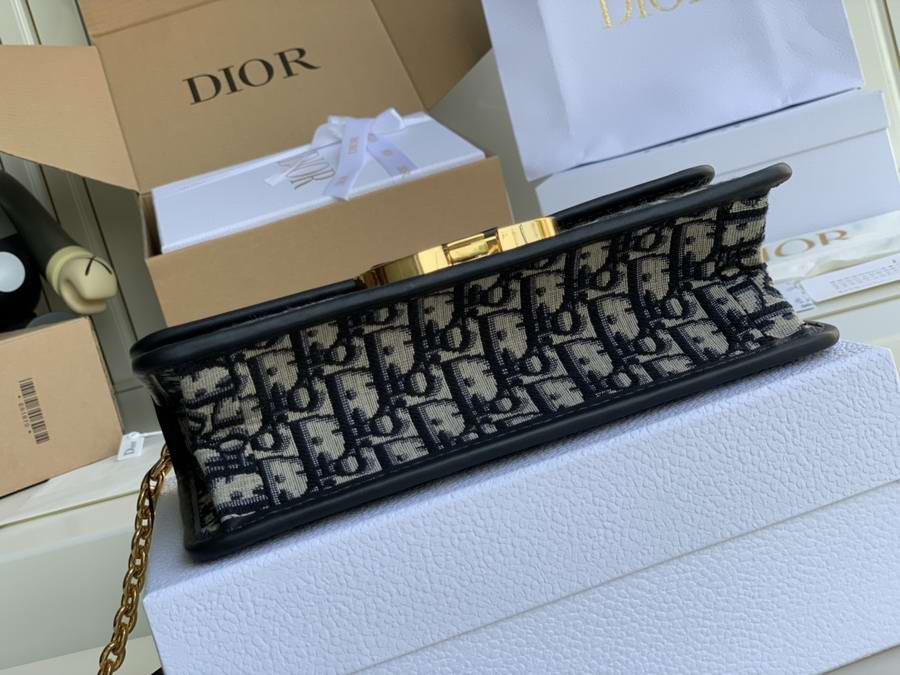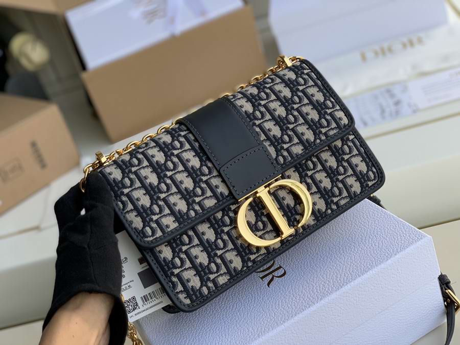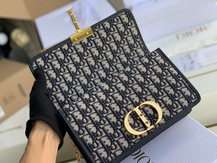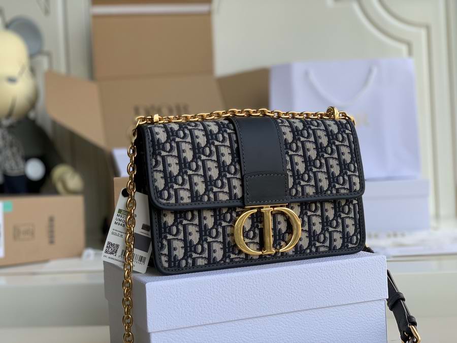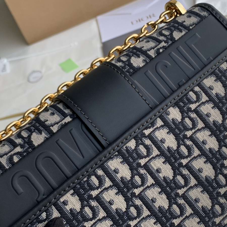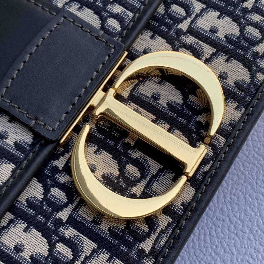 The 30 Montaigne line, inspired by the historic, emblematic address, presents essential pieces that portray the iconic codes of the House. The handbag is crafted in blue Dior Oblique jacquard for an elegant and timeless look. The flap is embellished with an antique gold-finish metal 'CD' clasp, inspired by the seal of a Christian Dior perfume bottle. Refined details such as an embossed '30 Montaigne' signature on the back highlight the sleek design.