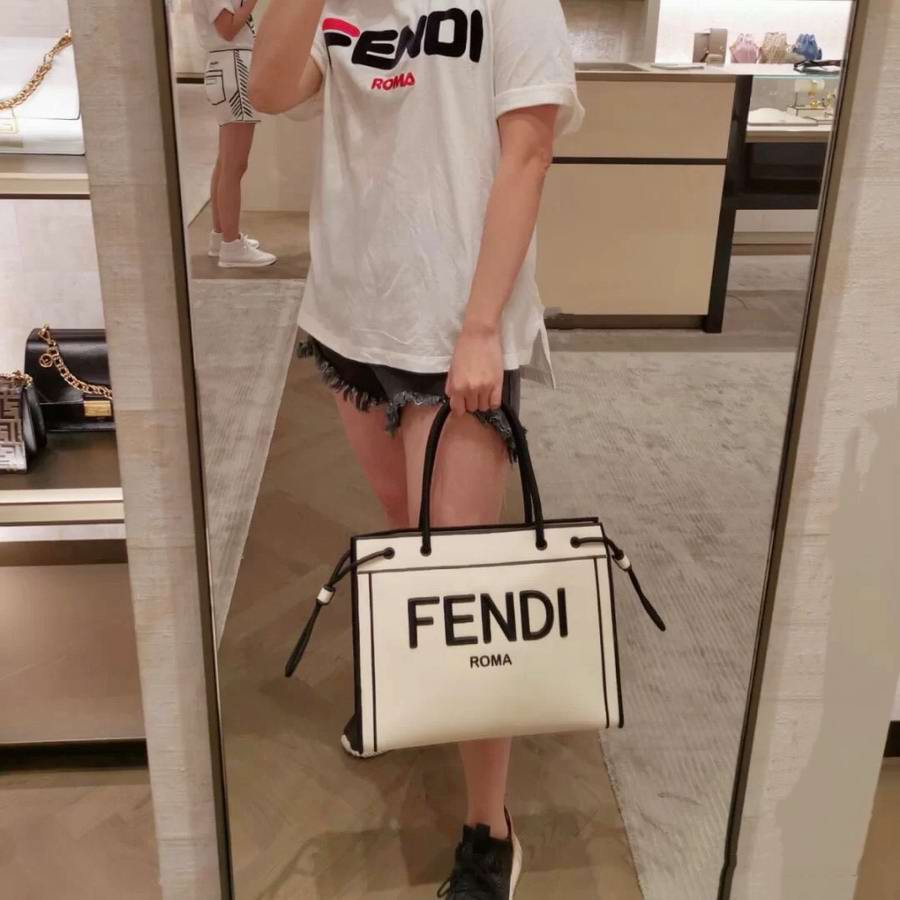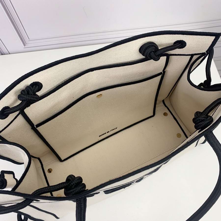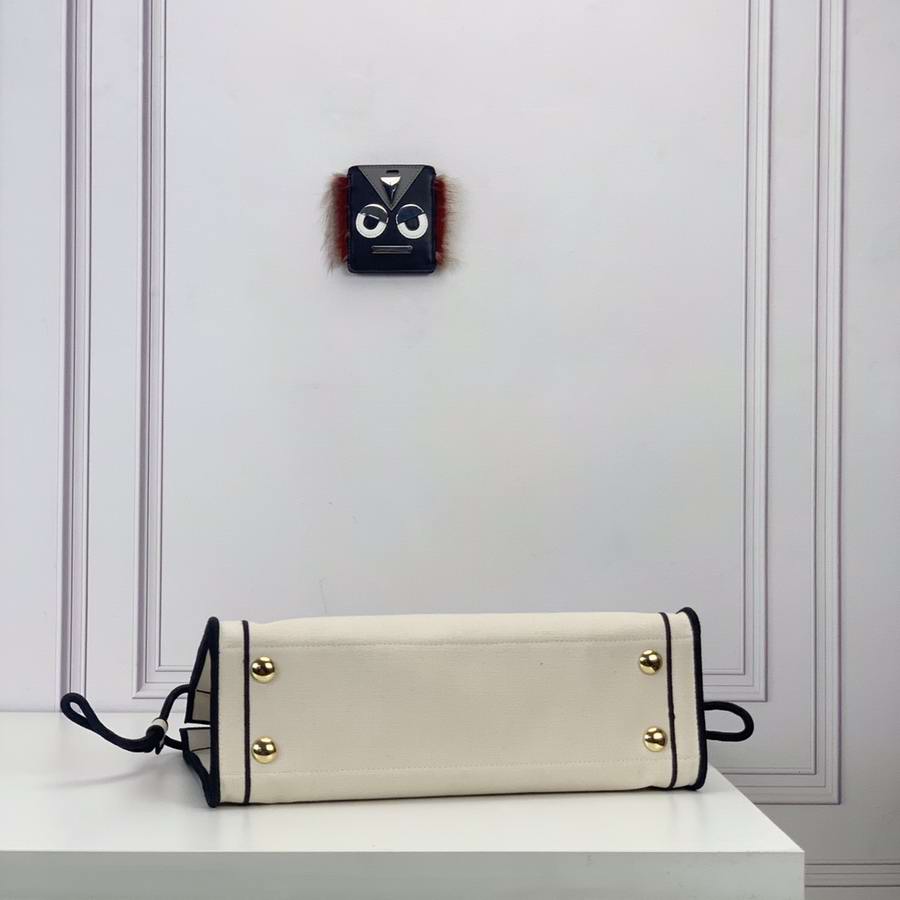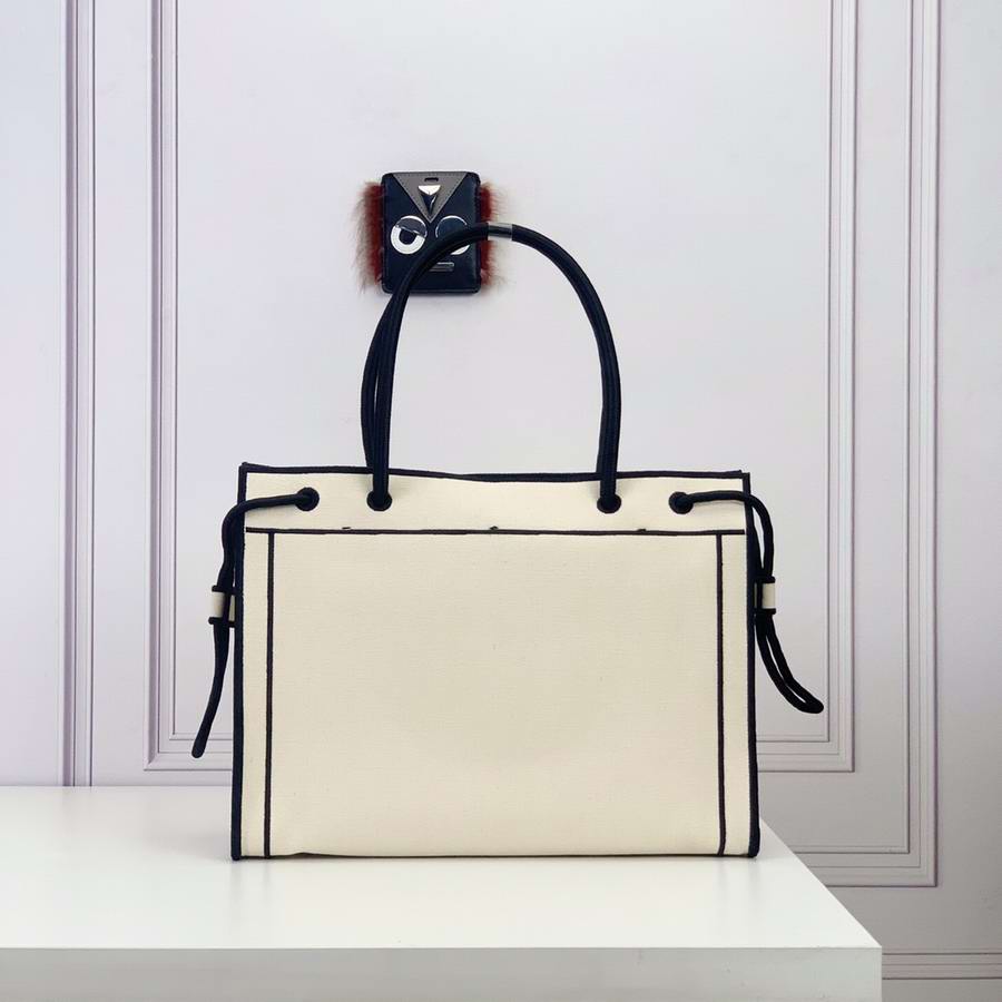 FENDI ROMA Shopper bag, size medium, made of natural color fabric, finished with edges and ?�FENDI ROMA?� lettering embroidered in contrasting black thread. Featuring a spacious unlined compartment with pockets. Can be carried by hand thanks to the two black rope handles.