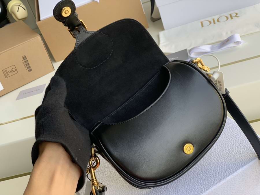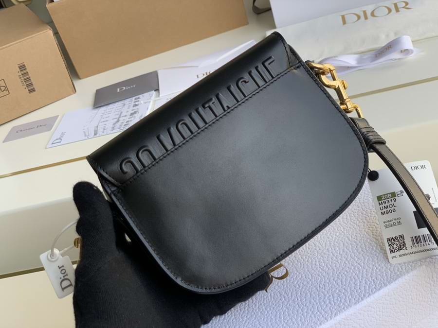 The Dior Bobby is a hobo style showcasing sophisticated lines and harmonious proportions. This small model is crafted from black box calfskin with a flexible suede interior, and is enhanced by antique gold-finish metal hardware. Its removable and adjustable shoulder strap has a military-inspired buckle, and allows the bag to be worn over the shoulder, crossbody or carried by hand.