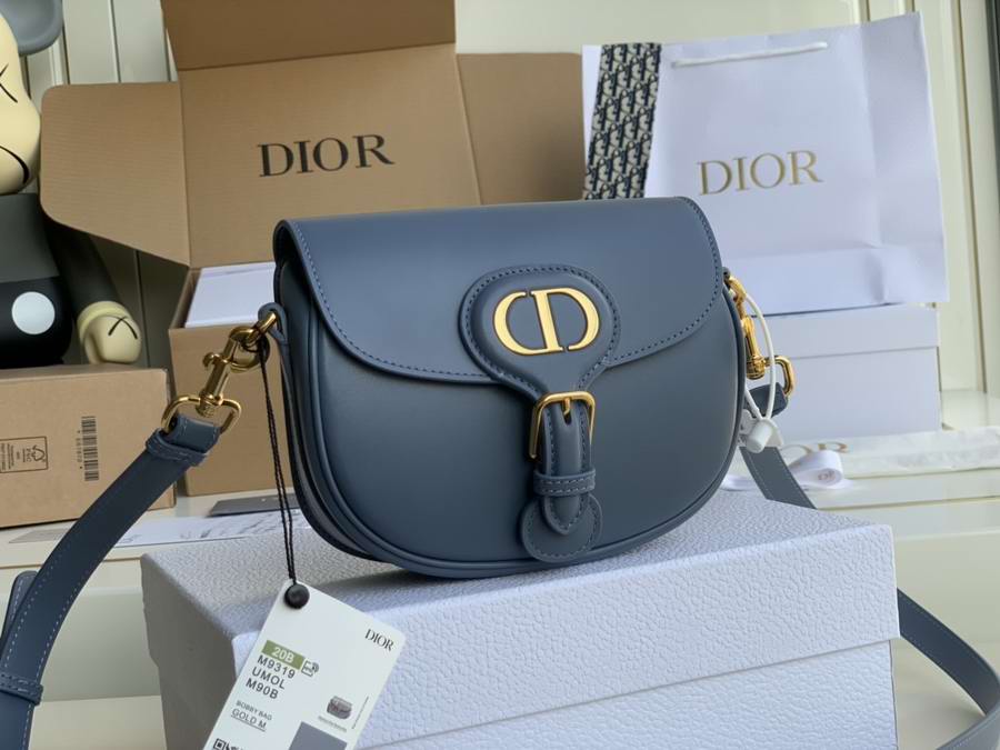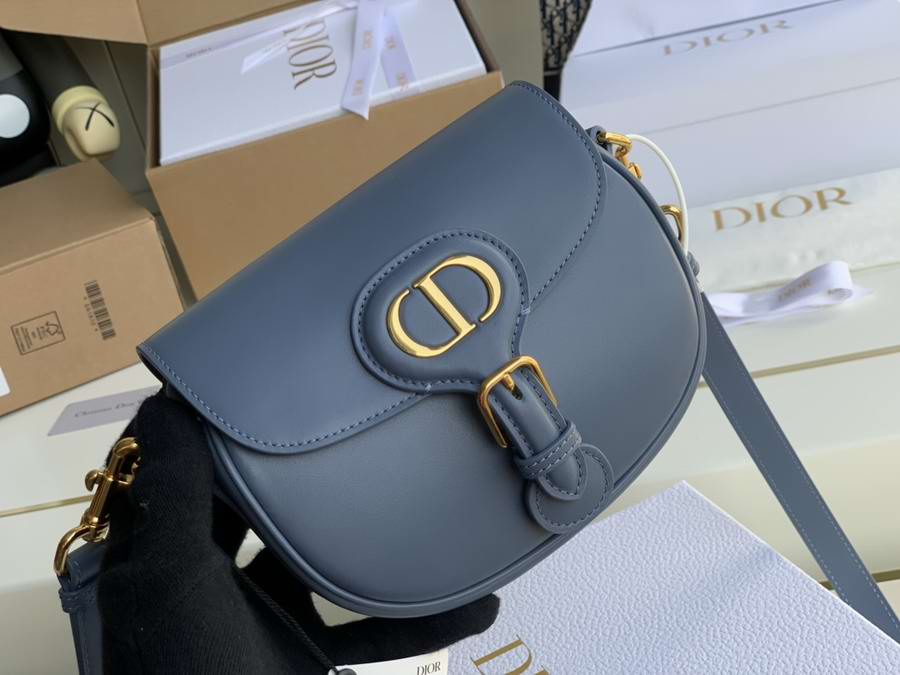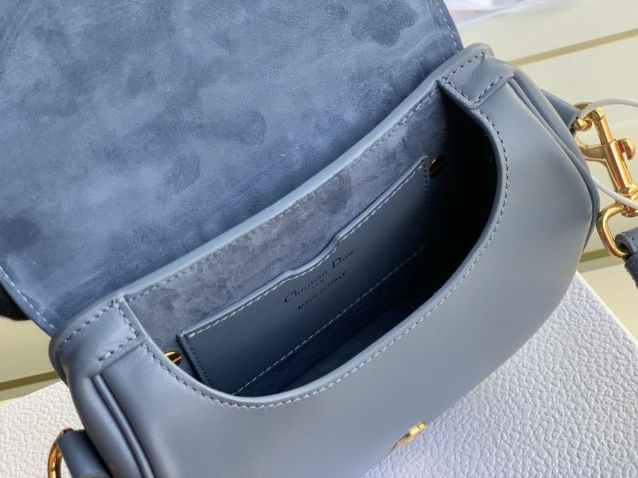 The Dior Bobby is a hobo style showcasing sophisticated lines and harmonious proportions. This small shape is crafted from cloud blue box calfskin with a flexible suede calfskin interior, and is enhanced by antique gold-finish metal hardware. Its removable and adjustable shoulder strap has a military-inspired buckle, and allows it to be carried by hand, worn over the shoulder or crossbody.