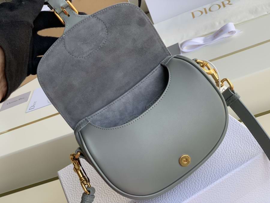 The Dior Bobby is a hobo style showcasing sophisticated lines and harmonious proportions. This small model is crafted from gray box calfskin with a flexible suede interior, and is enhanced by shiny antique gold-finish metal hardware. Its removable and adjustable sliding shoulder strap has a military-inspired buckle, and allows the bag to be worn over the shoulder, crossbody or carried by hand.