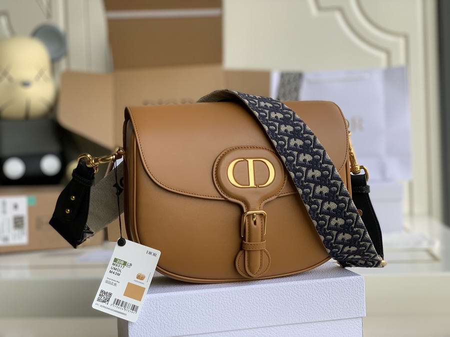 The Dior Bobby is a hobo style showcasing sophisticated lines and harmonious proportions. The large bag is crafted from brown box calfskin with a suede calfskin interior for added softness, and is enhanced with antique gold-finish metal hardware. Its adjustable and removable Dior Oblique embroidered shoulder strap allows this oversized style to be carried by hand, worn over the shoulder or crossbody.