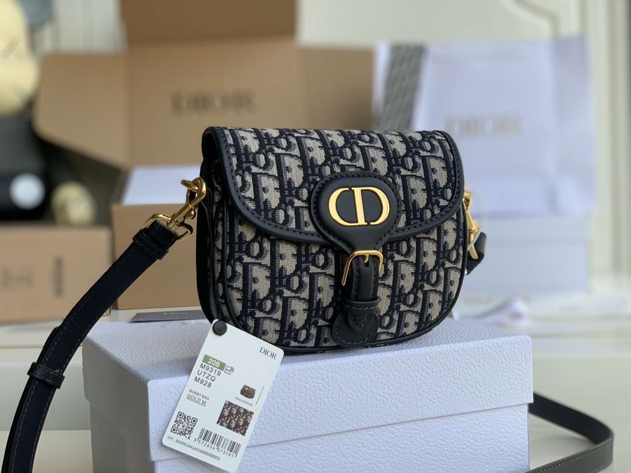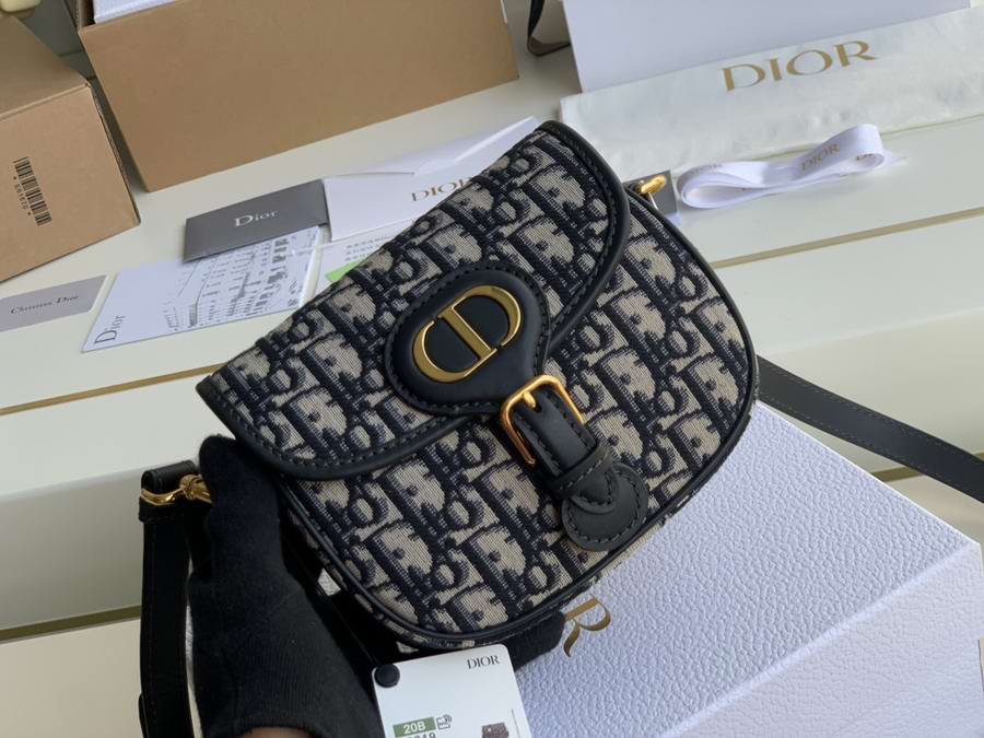 The Dior Bobby is a hobo style showcasing sophisticated lines and harmonious proportions. This small model is crafted from blue Dior Oblique jacquard canvas and enhanced by antique gold-finish hardware. Its removable and adjustable shoulder strap has a military-inspired buckle, and allows it to be carried on the shoulder or crossbody, as well as by hand.