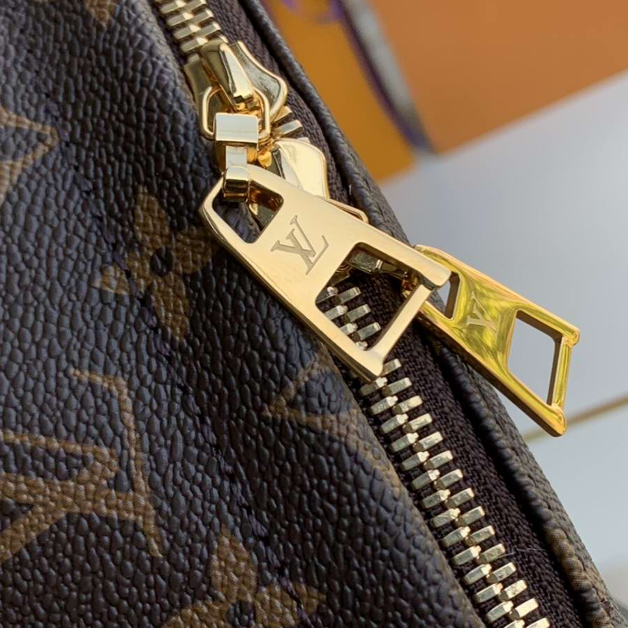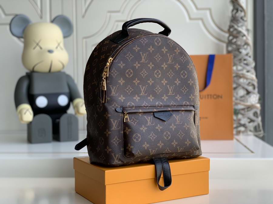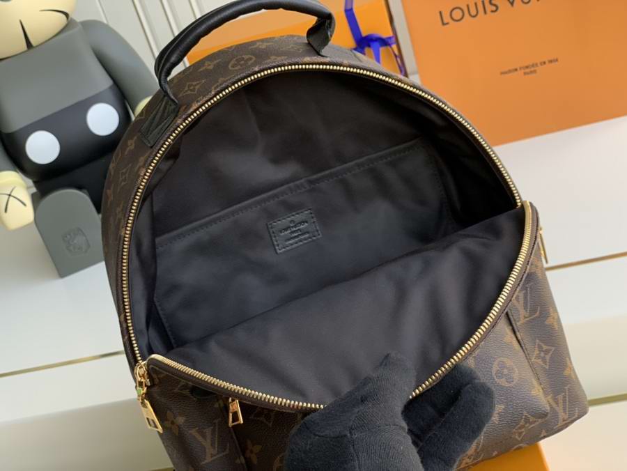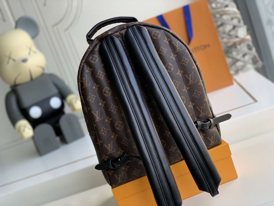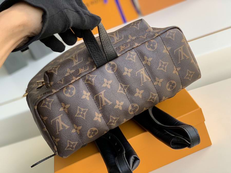 The Palm Springs MM backpack gives a fresh twist to a utilitarian staple, transforming it into an on-trend city bag. A chic and practical accessory for sporty urban nomads, this generously sized model is fashioned from iconic Monogram canvas with soft leather trim and gold-tone hardware. The quilted straps are foam-backed for a comfortable carry.