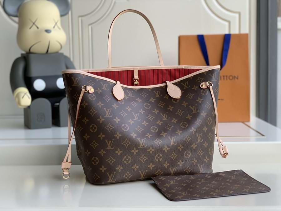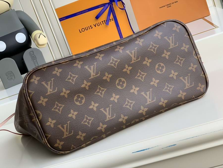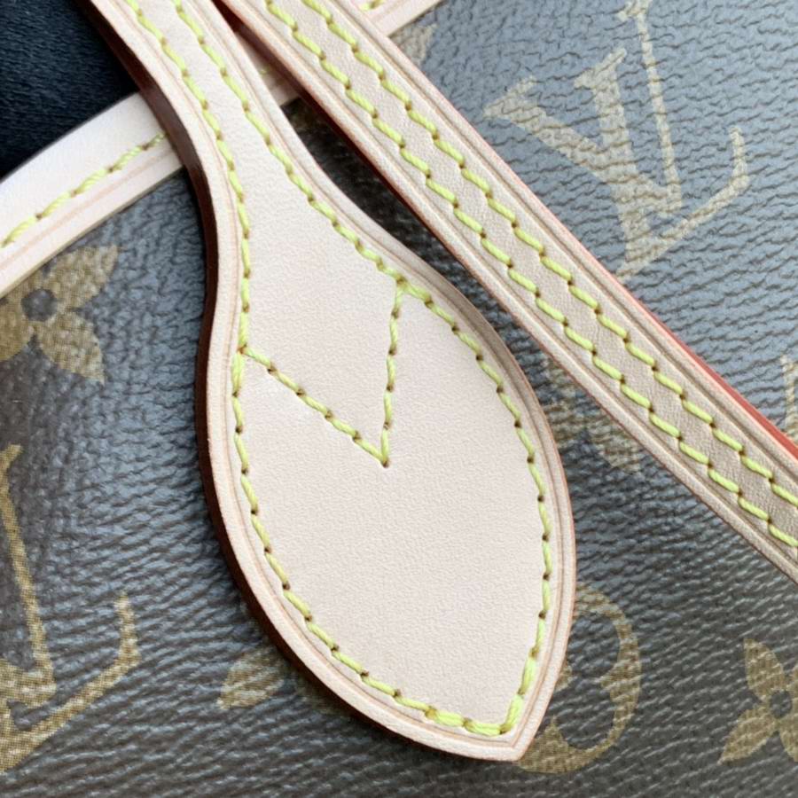 The Neverfull MM tote unites timeless design with heritage details. Made from supple Monogram canvas with natural cowhide trim, it is roomy yet not bulky, with side laces that cinch for a sleek allure or loosen for a casual look. Slim, comfortable handles slip easily over the shoulder or arm. Lined in colourful textile, it features a removable pouch that can be used as a clutch or an extra pocket.