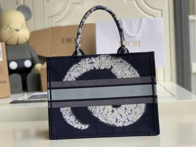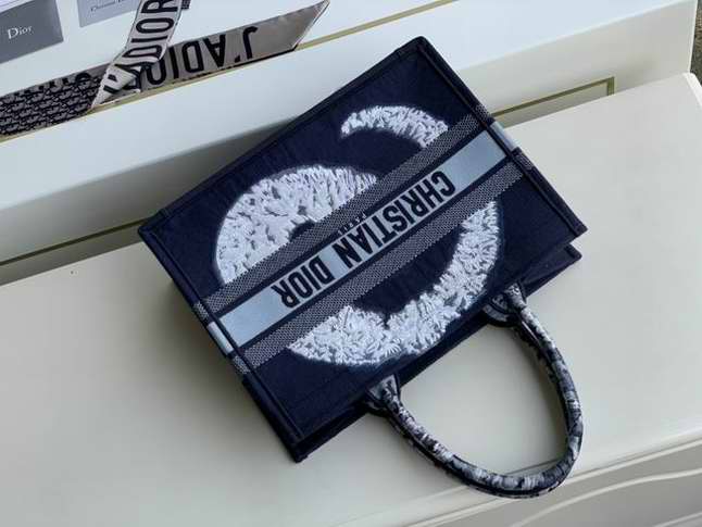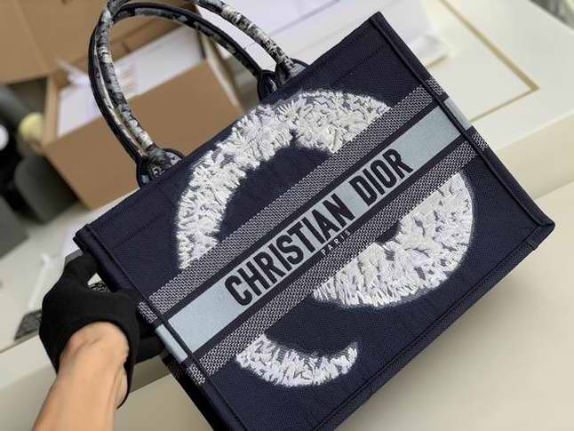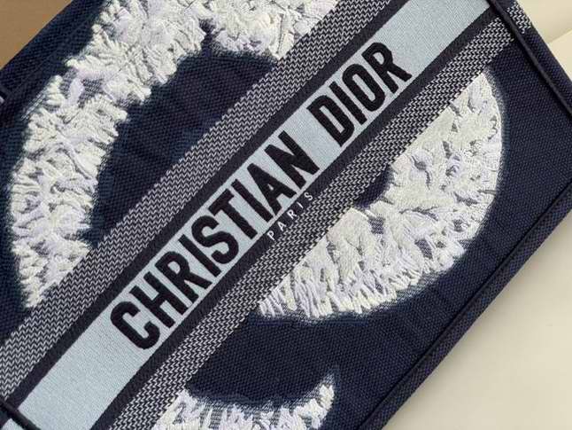 The Dior Book Tote, an original style introduced by Creative Director Maria Grazia Chiuri, has become a staple of the Dior aesthetic. Ideally designed to carry all your daily essentials, the large shape is fully embroidered with blue multicolor tie & dye and a 'Christian Dior' signature on the front. This carryall is a perfect example of the Dior savoir-faire and combines well with small accessories like the Mitzah scarf.
