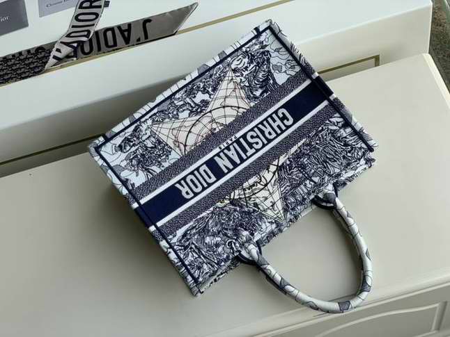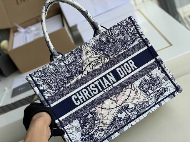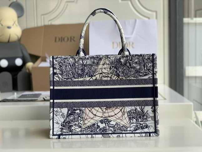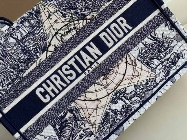 The Dior Book Tote, an original style introduced by Dior's Creative Director Maria Grazia Chiuri, has become a staple of the Dior aesthetic. Ideally designed to carry all your daily essentials, the large shape is fully embroidered with the Dior Around the World pattern and features a 'Christian Dior' signature on the front. This carryall is a perfect example of the Dior savoir-faire and combines well with small accessories like the Mitzah scarf.