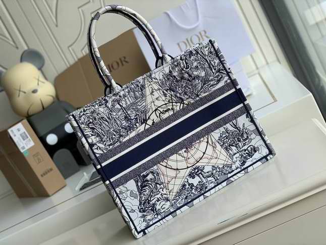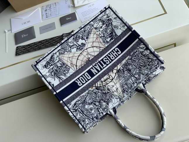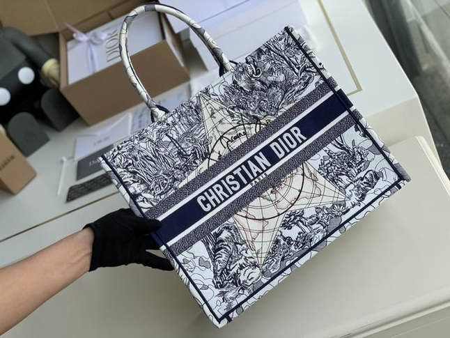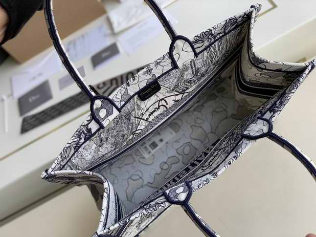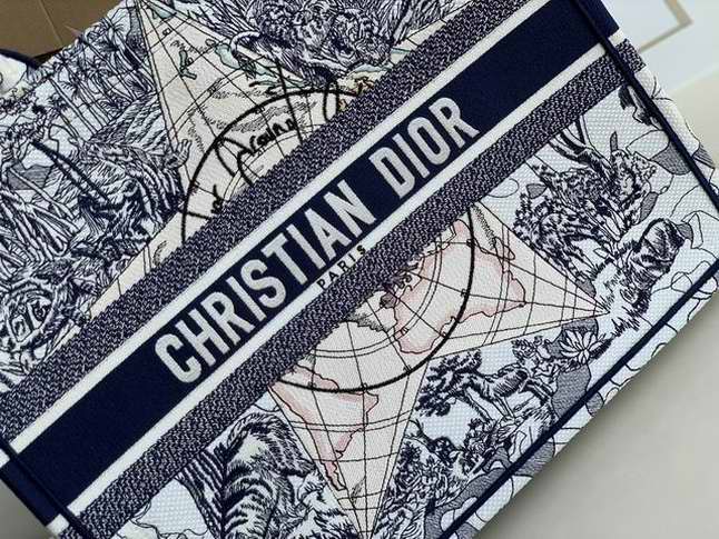 The Dior Book Tote, an original style introduced by Dior's Creative Director Maria Grazia Chiuri, has become a staple of the Dior aesthetic. Ideally designed to carry all your daily essentials, the large shape is fully embroidered with the Dior Around the World pattern and features a 'Christian Dior' signature on the front. This carryall is a perfect example of the Dior savoir-faire and combines well with small accessories like the Mitzah scarf.