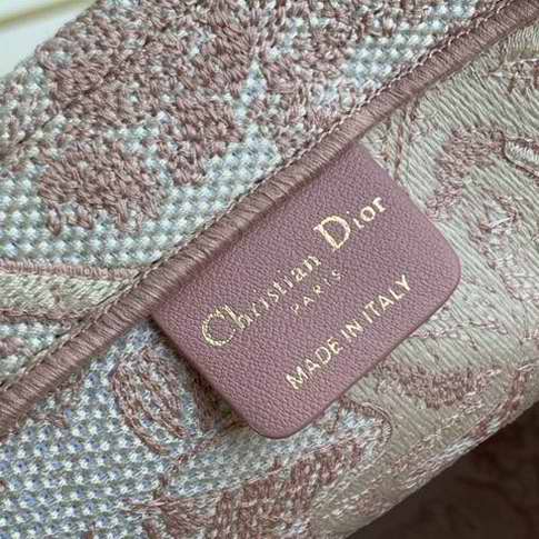 The Dior Book Tote, an original style introduced by Creative Director Maria Grazia Chiuri, has become a staple of the Dior aesthetic. Ideally designed to carry all your daily essentials, the small shape is fully embroidered with a pink Toile de Jouy motif. It features the 'Christian Dior' signature on one side and 'Cannes' on the other, suggestive of an invitation to travel. This carryall is a perfect example of the Dior savoir-faire and may be coordinated with a pouch or other small leather goods for a complete look.