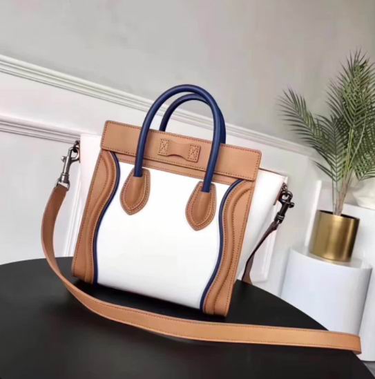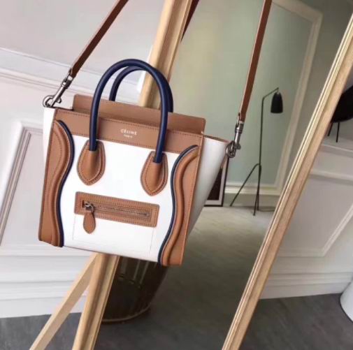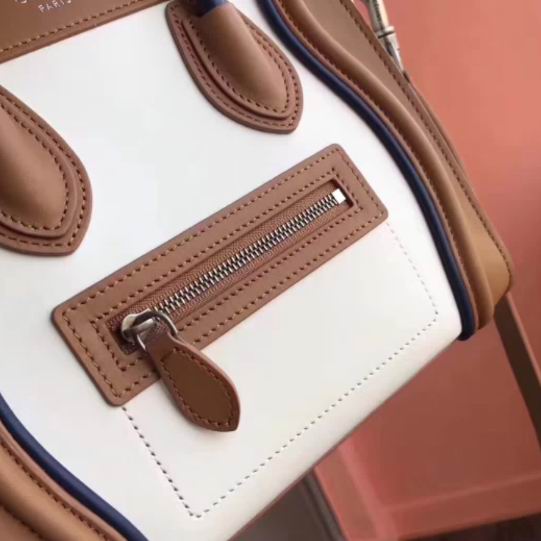 Celine >> Celine micro luggage bag in natural calfskin blue ,brown,white