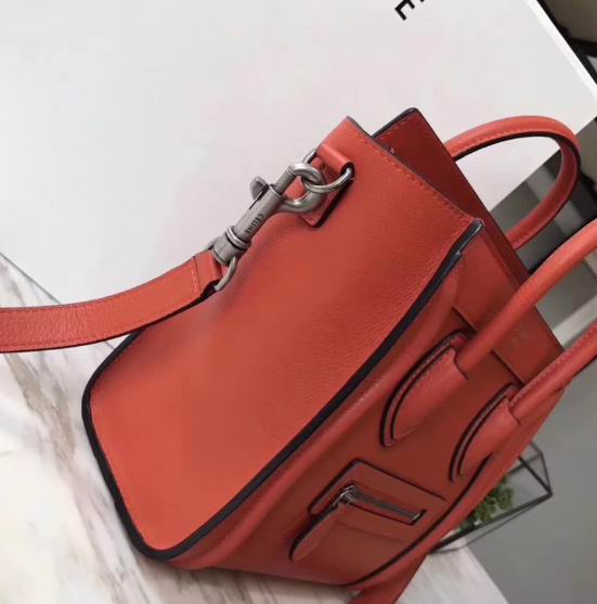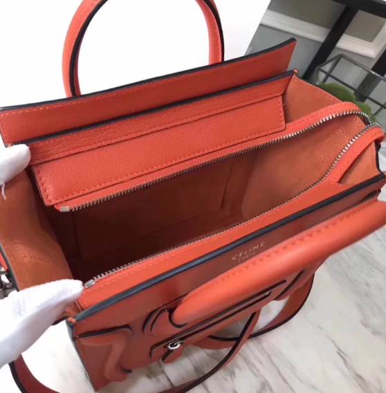 Celine MINI LUGGAGE BAG IN ORANGE SHINY SMOOTH CALFSKIN