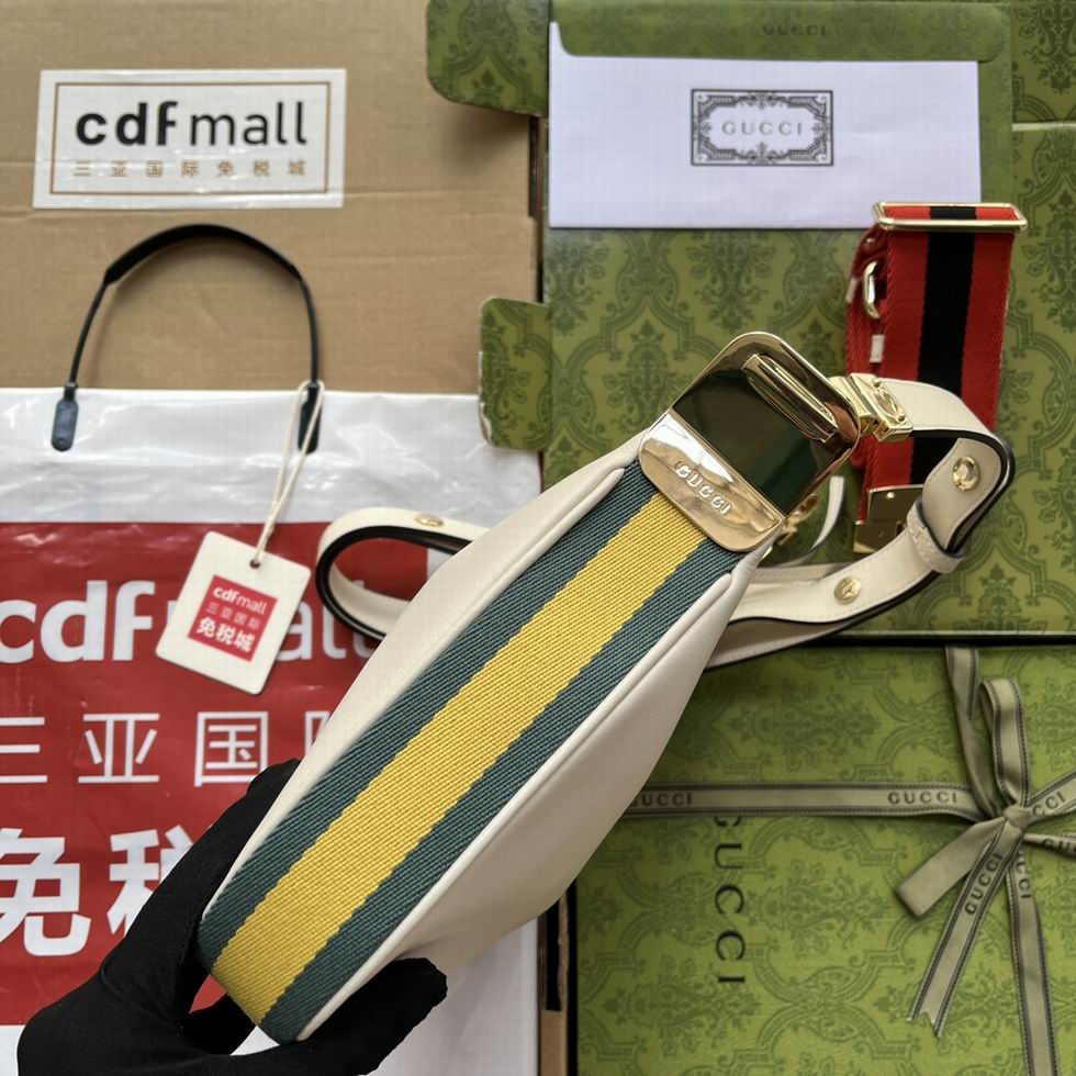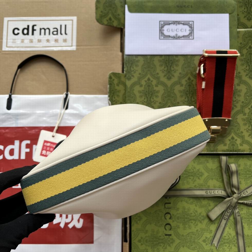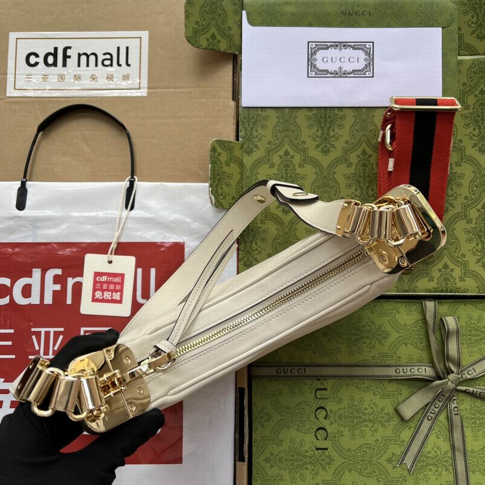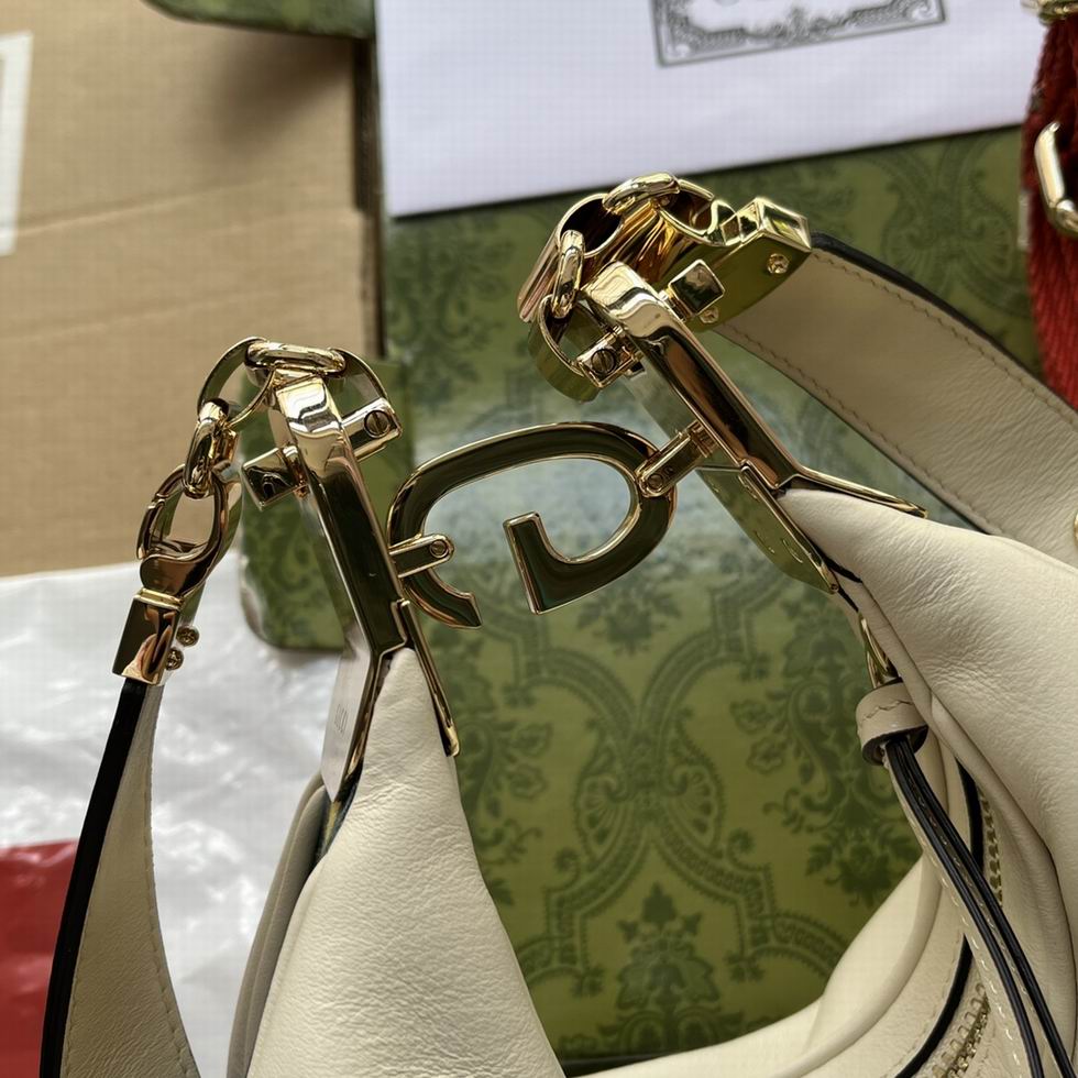 An ode to the timeless Hollywood glamour that shaped Gucci Love Parade, classic elements from the House's archives are reintroduced. Distinguished by its crescent moon shape, the accessory is further defined by a G shaped hook closure. Paired with soft materials, the heritage hardware creates a refined design with vintage appeal.