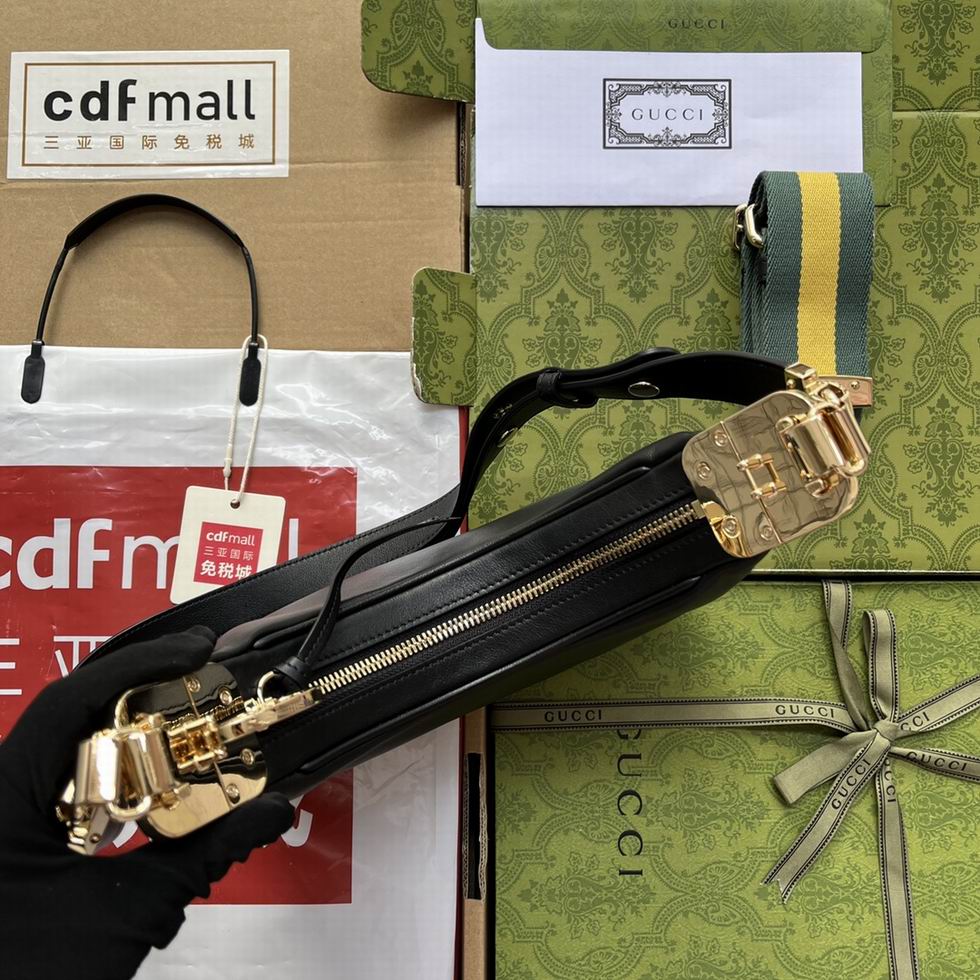An ode to the timeless Hollywood glamour that shaped Gucci Love Parade, classic elements from the House's archives are reintroduced. Distinguished by its crescent moon shape, the accessory is further defined by a G shaped hook closure. Paired with soft materials, the heritage hardware creates a refined design with vintage appeal.