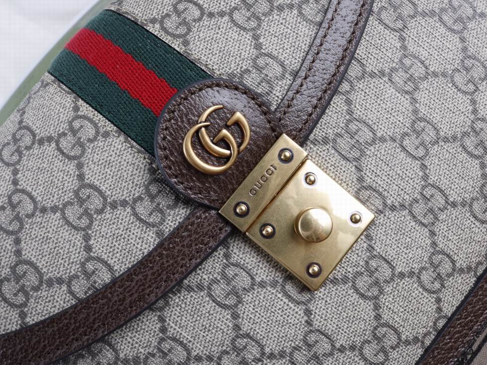 The world of Ophidia continues to evolve with new iterations each season. The top handle bag is presented as part of the Epilogue collection with a detachable shoulder strap. The vintage influenced square shape is accentuated by the House Web stripe and Double G hardware??a contemporary take on a Gucci archival belt buckle from the '70s. Crafted from the House's monogram canvas, the style has a strong logo feel.