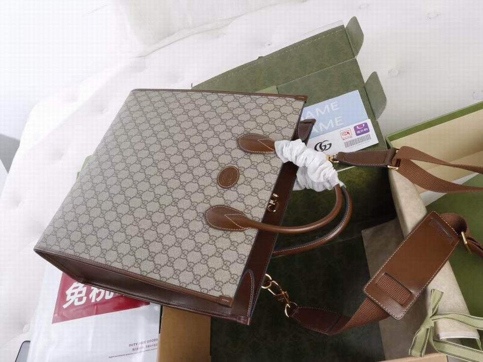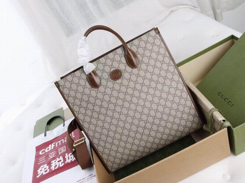 The Interlocking G has remained one of the most symbolic codes of the House since its introduction. The distinguishing emblem appears as a leather detail atop this medium tote. Completing the design's logo feel, the style is crafted from monogram canvas.