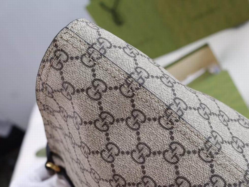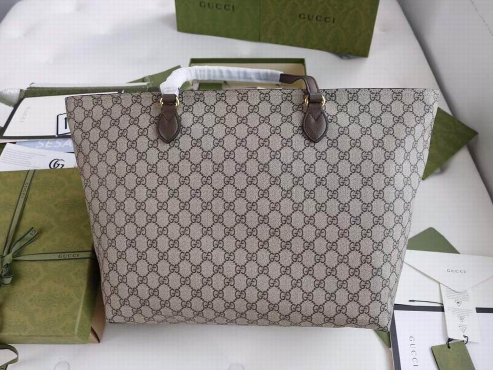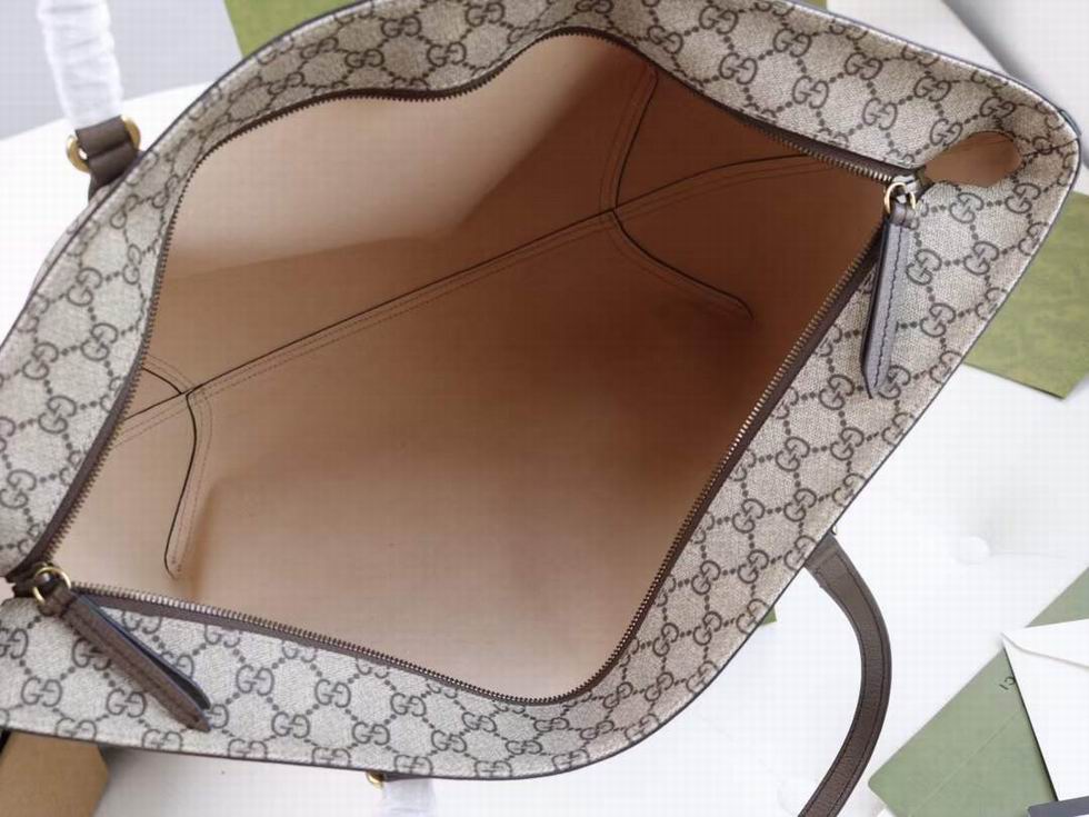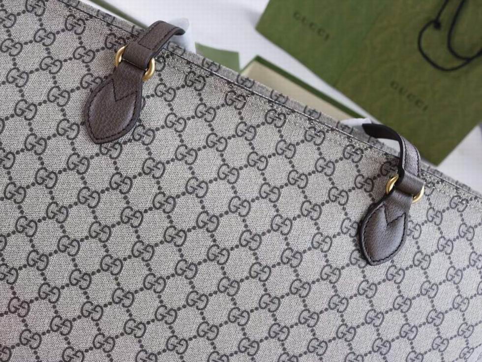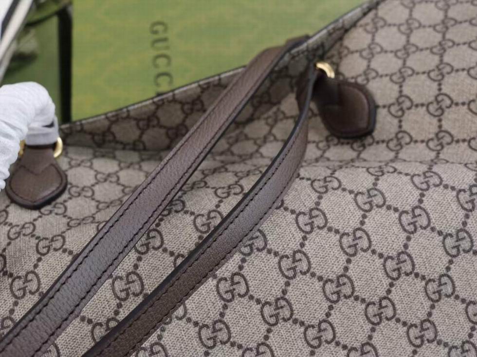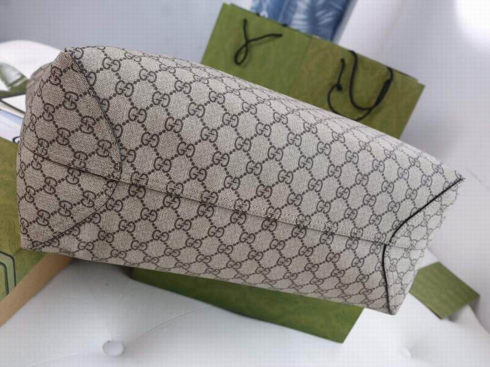 A classic combination of the House's most defining codes??the GG motif and Web stripe??the world of Ophidia continues to evolve, incorporating new shapes and silhouettes each season. With recognizable design elements in a practical new shape, this new medium sized tote is trimmed with textured leather and topped with Double G hardware. Thanks to its long leather handles, the style can also be carried as a shoulder bag.