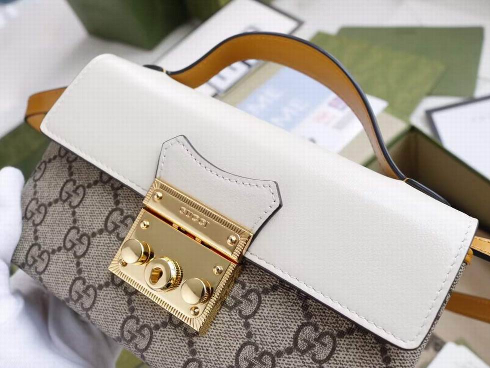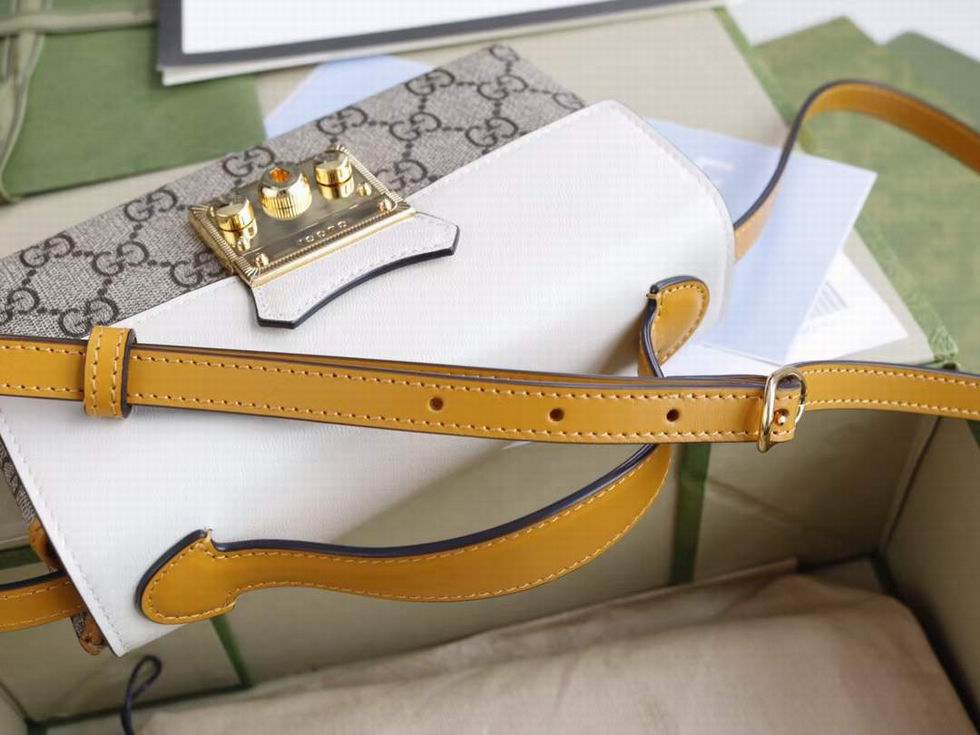 A mini version of the archival style, the Padlock is defined by its signature lock and key closure. The accessory is crafted from beige and ebony GG Supreme canvas with a white leather top. Adding a pop of color, burnt orange leather details complete the mini bag.