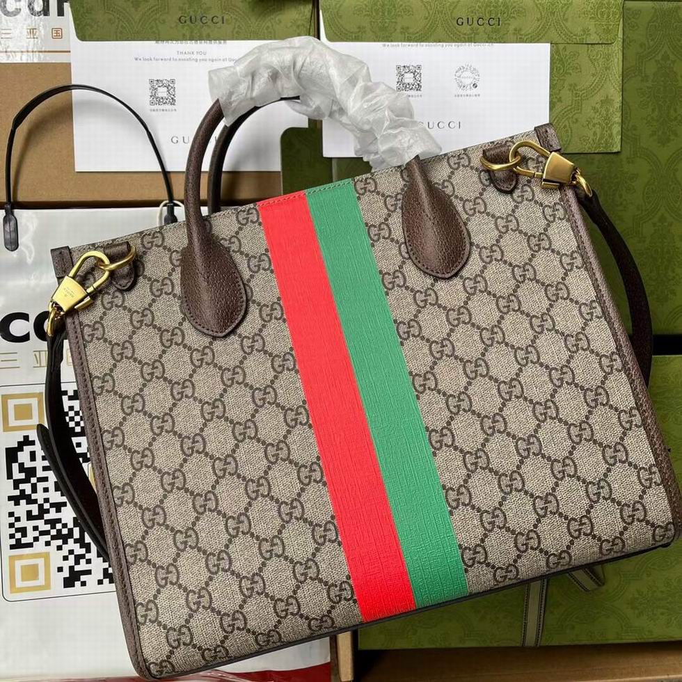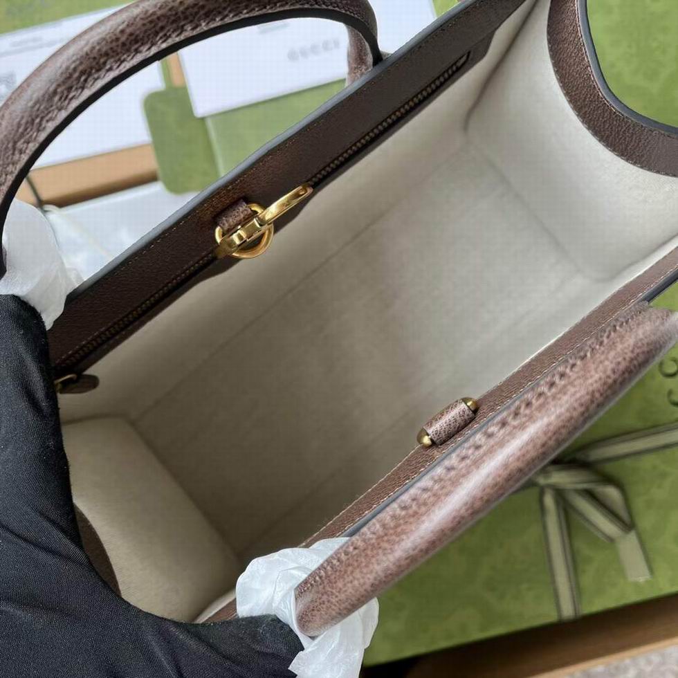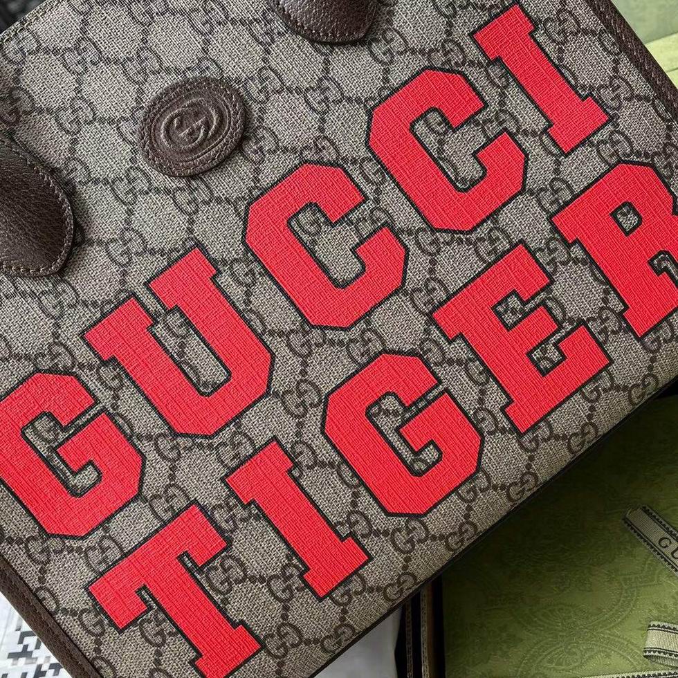 Designed in a structured shape, this small tote bag is crafted from GG Supreme canvas with brown leather trim, the small size double-handled silhouette has a top handle and shoulder strap.