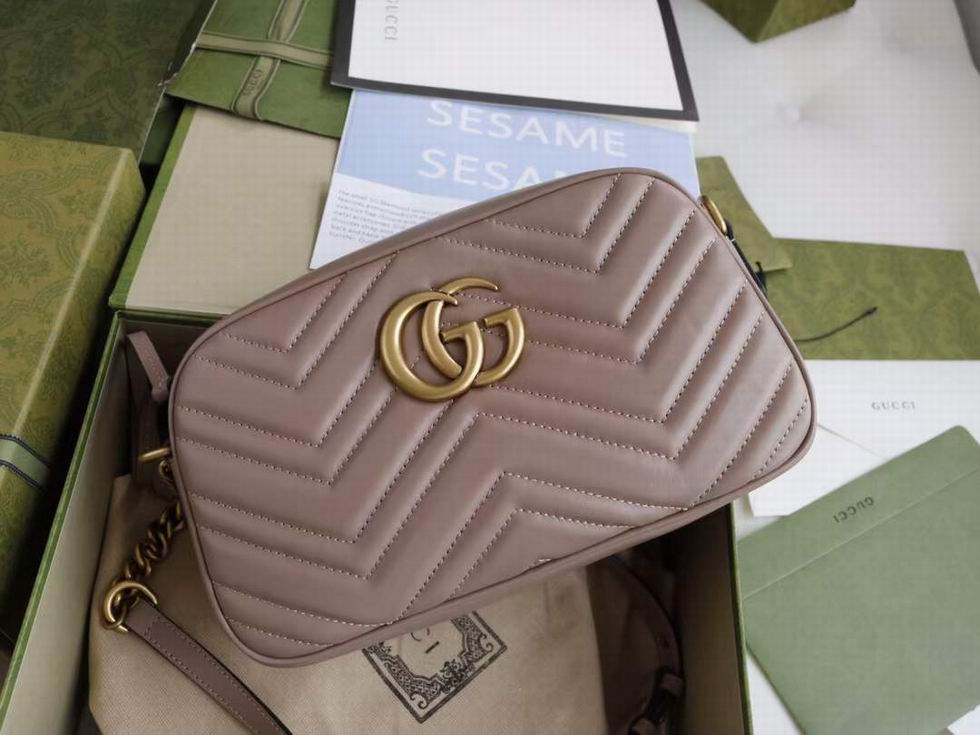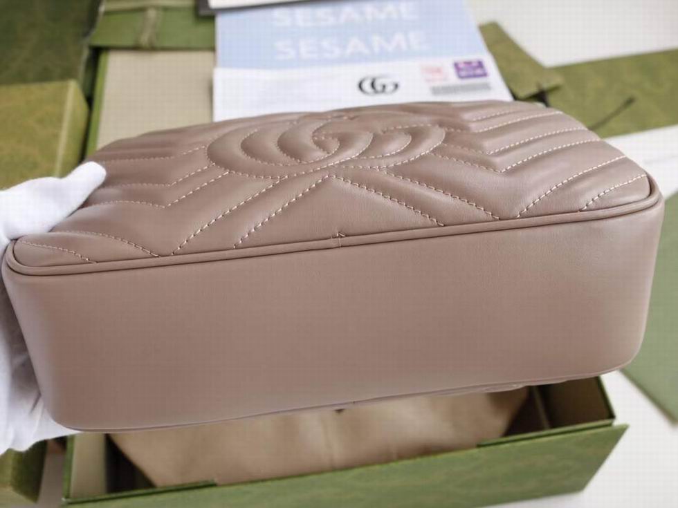 The small GG Marmont chain shoulder bag has a softly structured shape and a zip top closure with the Double G hardware. The chain shoulder strap has a leather shoulder detail. Made in matelass?� leather with a chevron design.