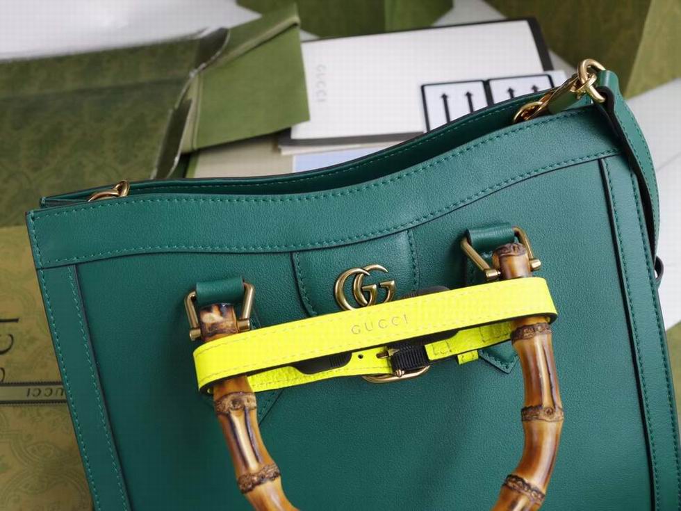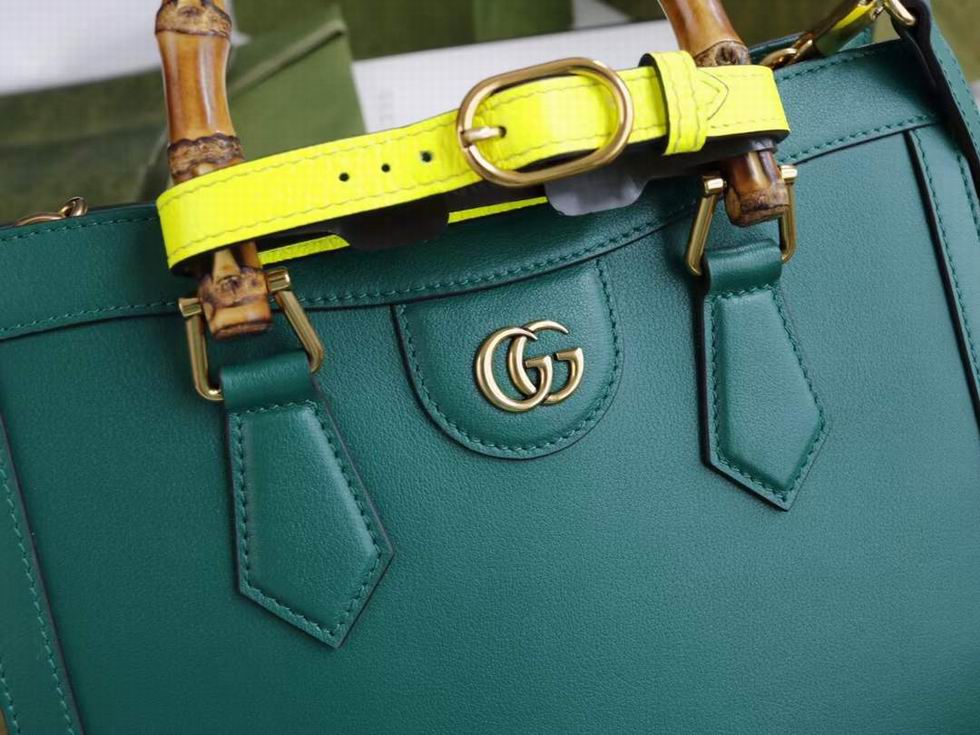 Reflective of its era, a bamboo handle tote was first presented by the House in 1991. Speaking to the narrative of evolution and reinvention that runs through Gucci??s designs, the Gucci Diana is reimagined by Alessandro Michele with removable leather belts ??a nod to the functional bands that once came with the original bag to maintain the shape of the handle