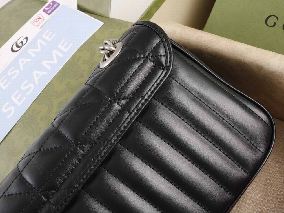 The Gucci Aria collection is an exploration of the House's most emblematic codes and symbols. The GG Marmont is synonymous with its matelasse leather and monogram hardware. Here, the small shoulder bag is reimagined with a new geometric take on its signature finish that combines vertical and diagonal motifs.