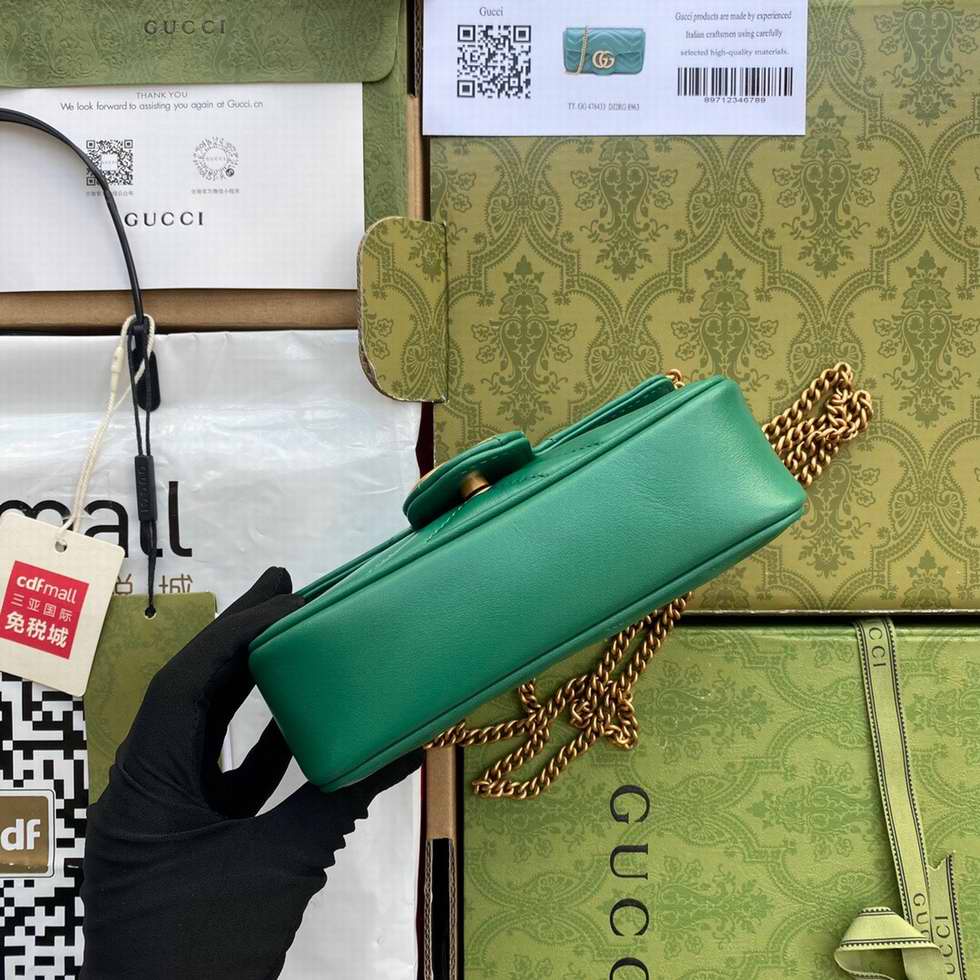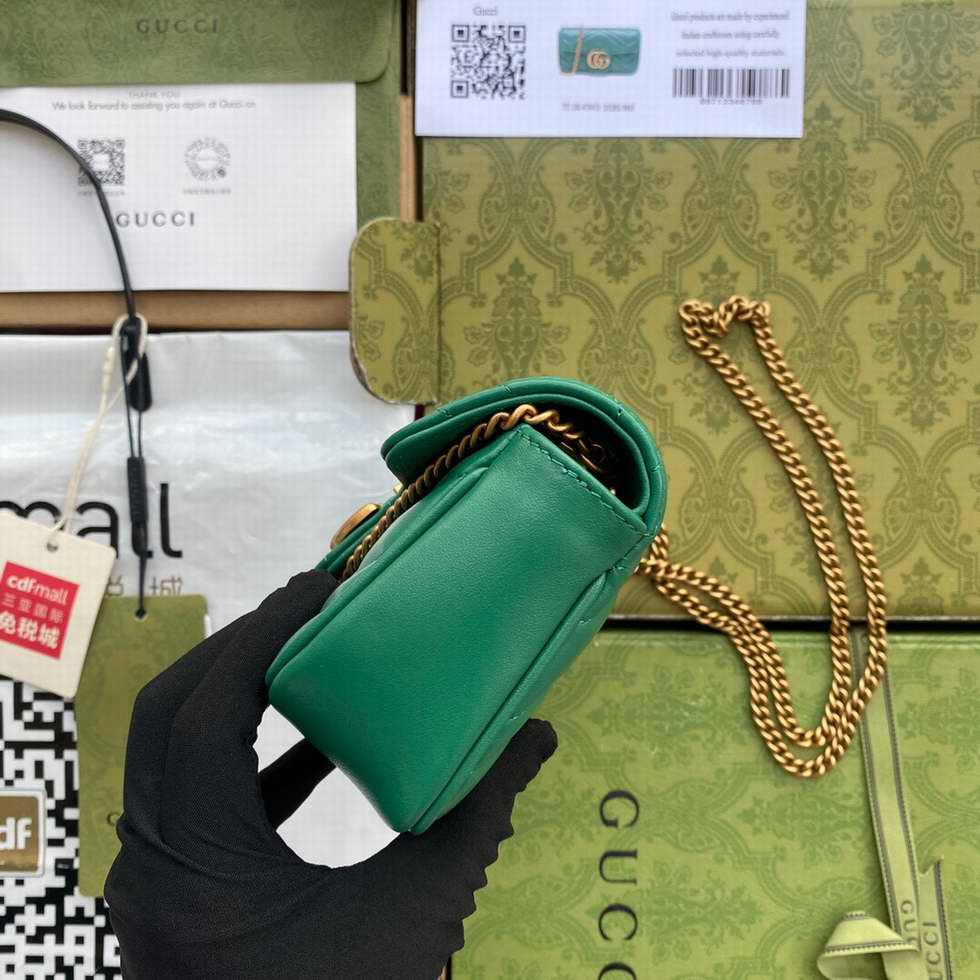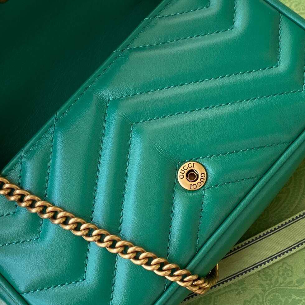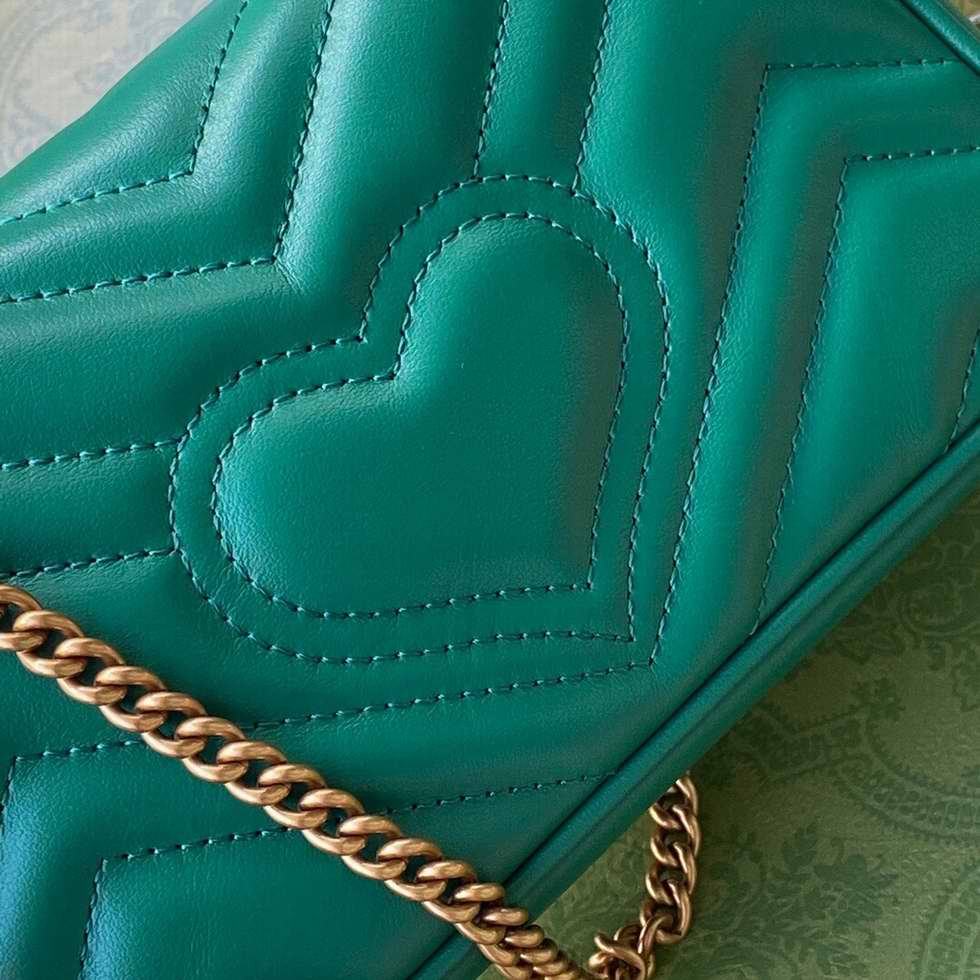 The GG Marmont mini bag has a key ring that can be used to attach it to a separate larger bag. It has a softly structured shape and a flap closure with Double G hardware. The hardware is inspired by an archival design from the '70s. Made in matelasse chevron leather.