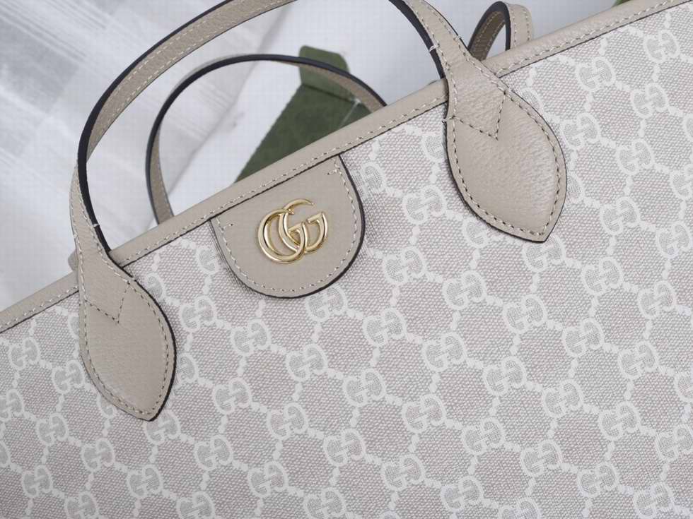 The Ophidia line continues to be one of Gucci signature handbags. New silhouettes are introduced each season, providing versatile accessories to complete any look. Two handles transform this tote bag, allowing it to be styled either as a shoulder bag or top handle. The Double G remains integral to the design, presented in GG Supreme canvas with a oatmeal leather trim.