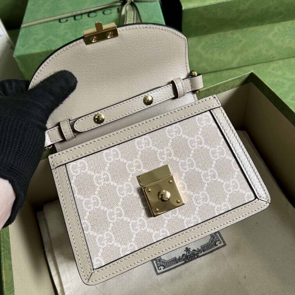 New hues and combinations continue to evolve the Gucci color palette to involve more refined hues. The signature Ophidia mini shoulder bag is reinvented in lilac leather with tonal trims, brining an inherently contemporary feel.